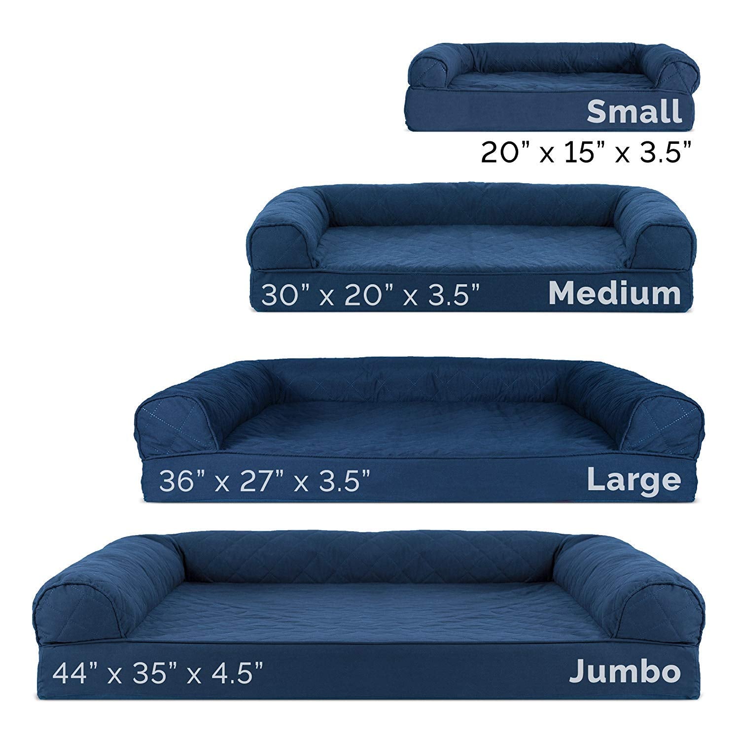 Details: Finally, a solution for your arthritic pet's pain! The Furhaven Quilted Sofa-Style Dog Bed has a smooth surface providing your pet comfort while the orthopedic (egg crate) foam base supports your dog's joints and pressure points. The Jumbo Plus option, for larger breeds, features solid slab orthopedic foam for greater support and comfort. The sofa bed has three walls to give your pup a variety of positions to lay in while remaining comfortable. Your best friend deserves a good night’s rest and now, it’s possible. With its very own orthopedic pet bed, your loved one will have maximum comfort for a great night's rest. Any position will do on this sofa bed! The squishy bolsters on three sides provide comfort for your pup to lay down in a variety of ways while always being provided the support they need. For example, your dog can lay on their tummy and use one of the bolsters as a pillow for a cozy night of sweet dreams. This luxurious orthopedic dog couch provides a cozy spot for your companion to snuggle up in, leaving your favorite spot on the couch all for you! No more sharing the bed or finding dog hair on the couch. With soft side walls and a snuggly pinsonic quilted surface your pet won’t need to count sheep to drift into a deep slumber on this orthopedic dog couch. Easy to clean. Cover care: Remove from core before washing (see seam label for fabric care instructions). Foam care: Spot clean with mild soap; rinse. Blot, then air dry. Do not wring. Not for unsupervised use by animals with chewing behaviors.