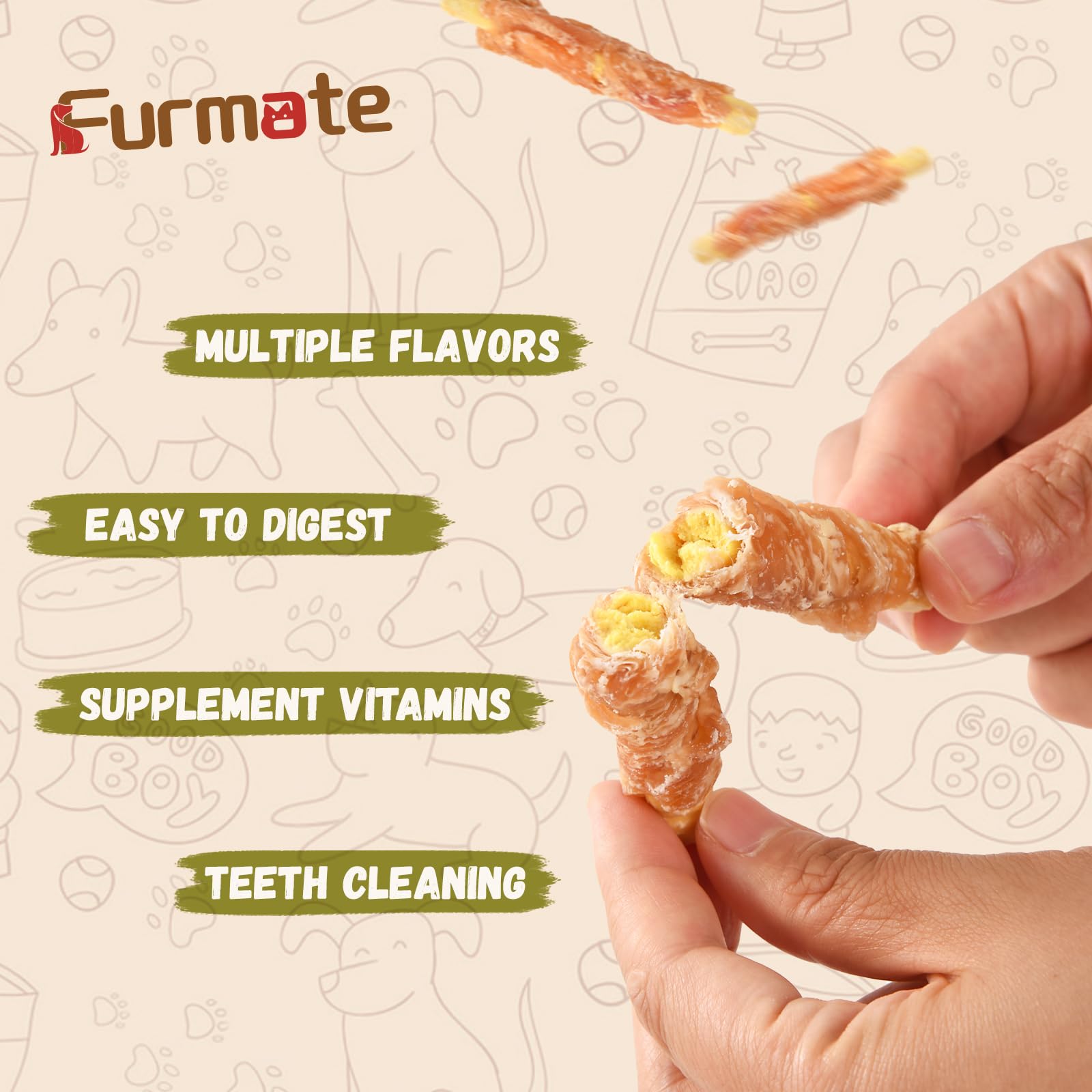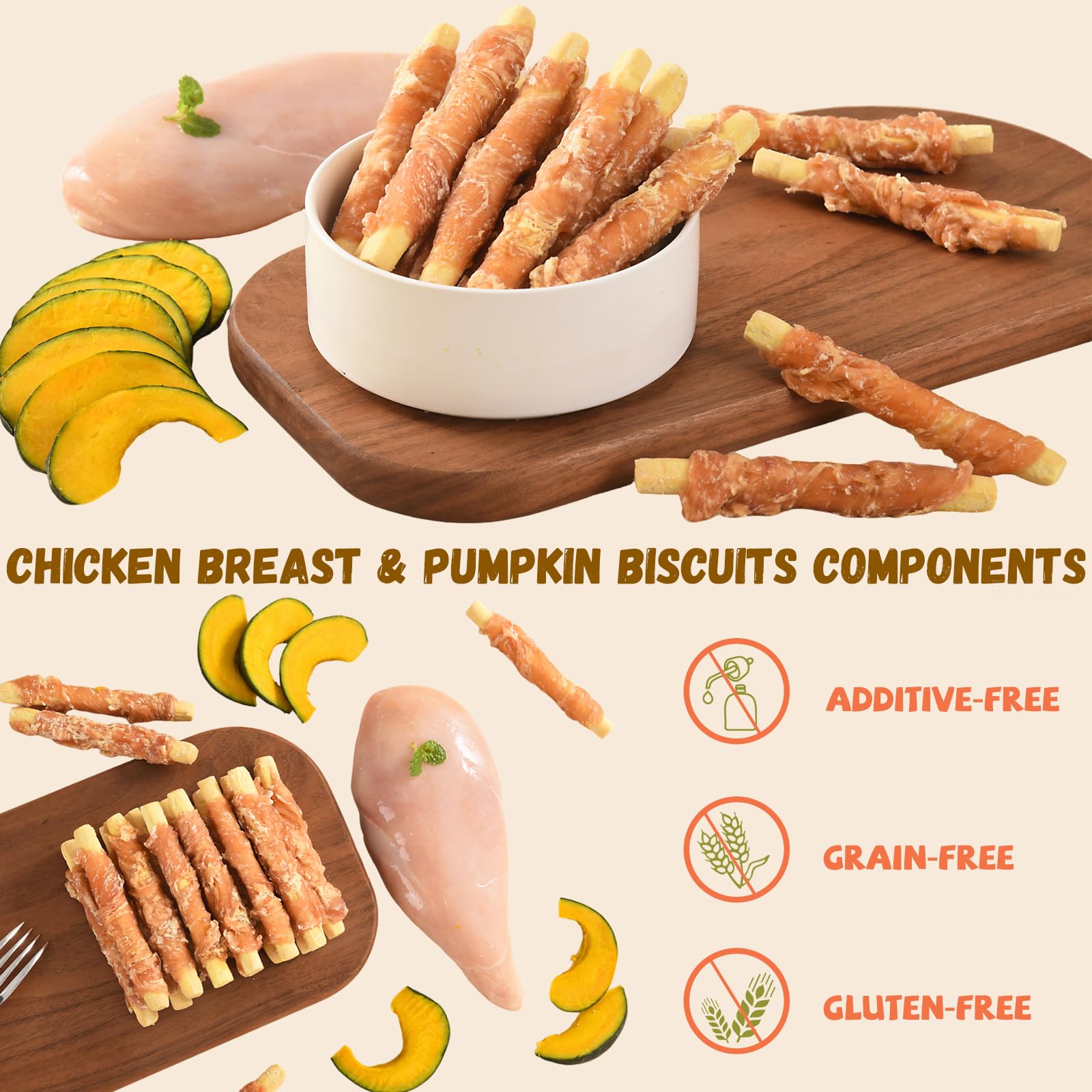 Furmate Chicken Jerky Wrapped Pumpkin Biscuits Treats for Dogs,Low Fat Rawhide Free Healthy Chewy Dog Training Treats,High Fiber Pumpkin Biscuits Dog Snacks for Small Medium Large Dogs 10.58 oz