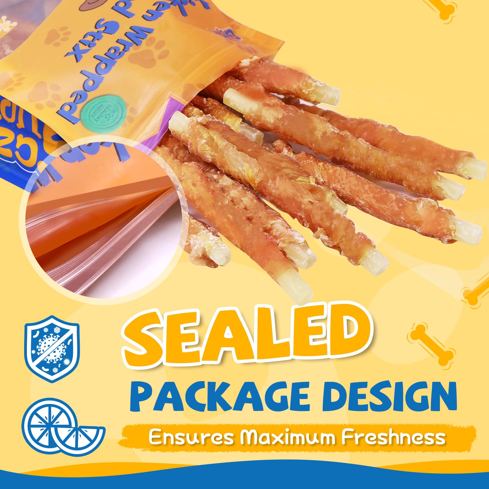 Gazeupon Rawhide Free Dog Treats, Chicken Wrapped Cod Sticks, Healthy Training Treats, Soft Chewy Snacks for Small Dogs w/Glucosamine Chondroitin, Low Fat