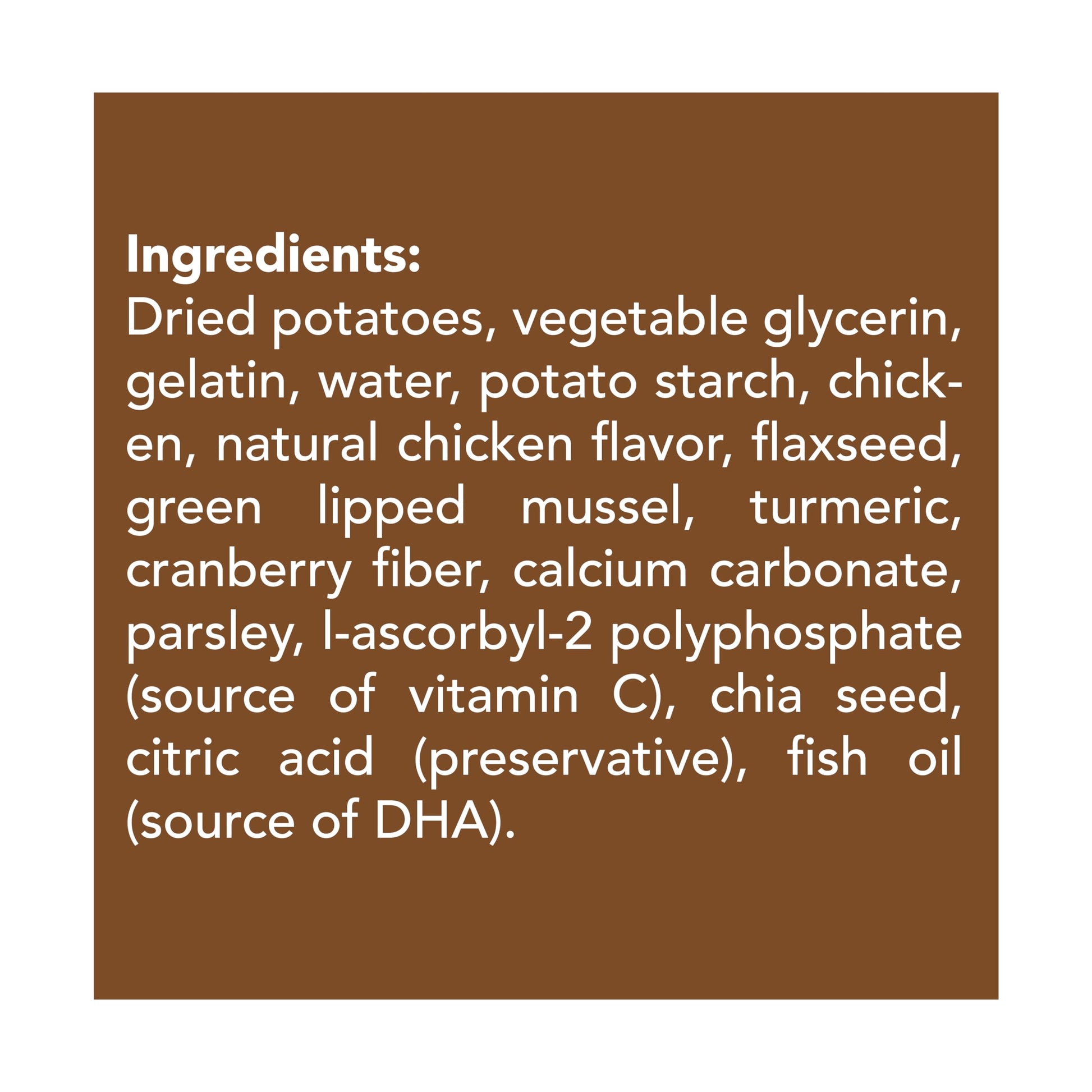 - Added calcium and green-lipped mussel to support your pal's teeth, anti-flammatory, and cartilage support.