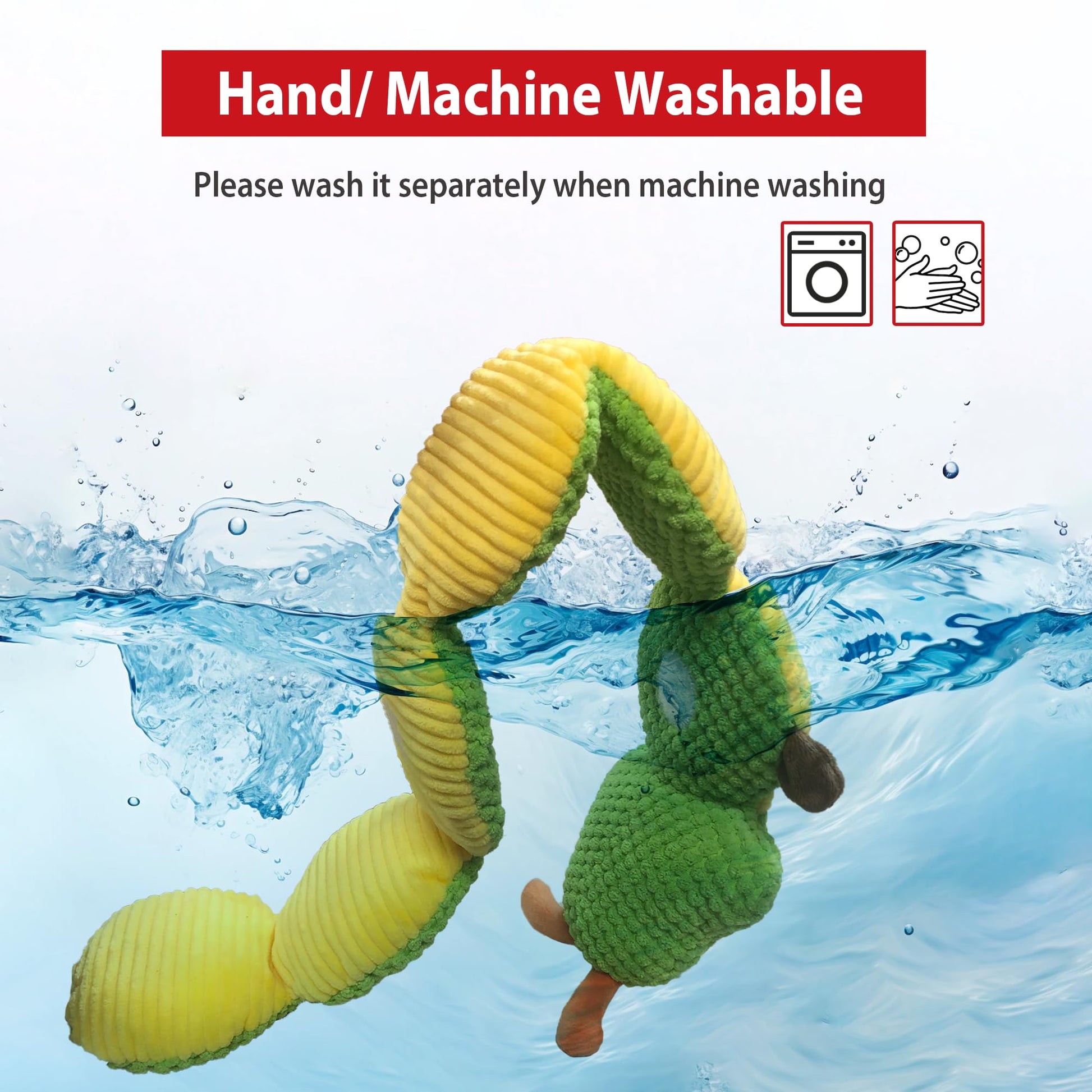 UNIQUE CATERPILLAR DESIGN: The plush dog toy is designed to look like a real vivid caterpillar. The squeakers and food inside would keep your dog occupied and entertained by itself (avoid destructive behavior). Its extended size of 25" make it a dog tug toy to realize interactive play with you indoor or outdoor