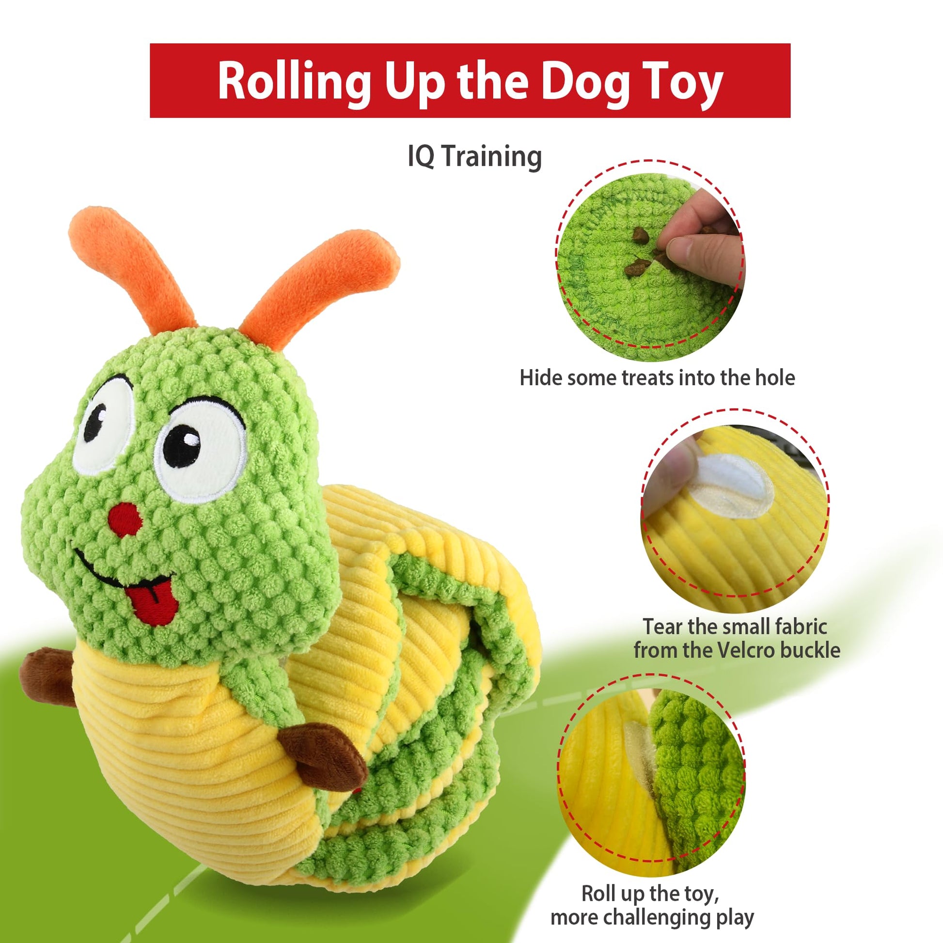 Gigwi Interactive Dog Puzzle Toys, Dog Snuffle Toy Treat Dispensing IQ Training, Cute Caterpillar Design Squeaky Plush Dog Toys Tug of War, Hide and Seek Dog Entertainment Toys for Boredom