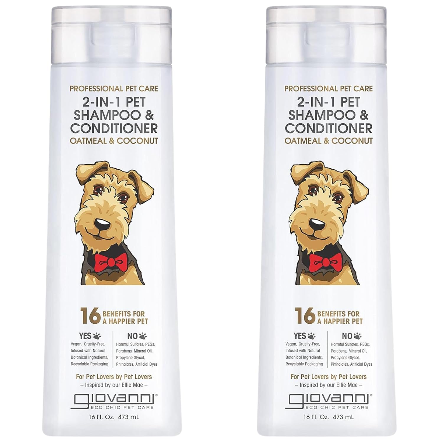 GIOVANNI Professional 2-in-1 Pet Shampoo & Conditioner - for Dogs & Cats, Oatmeal & Coconut, Helps Neutralize Odors, Deeply Cleanses, Silkens, Controls Static - 16 oz (Pack of 2)