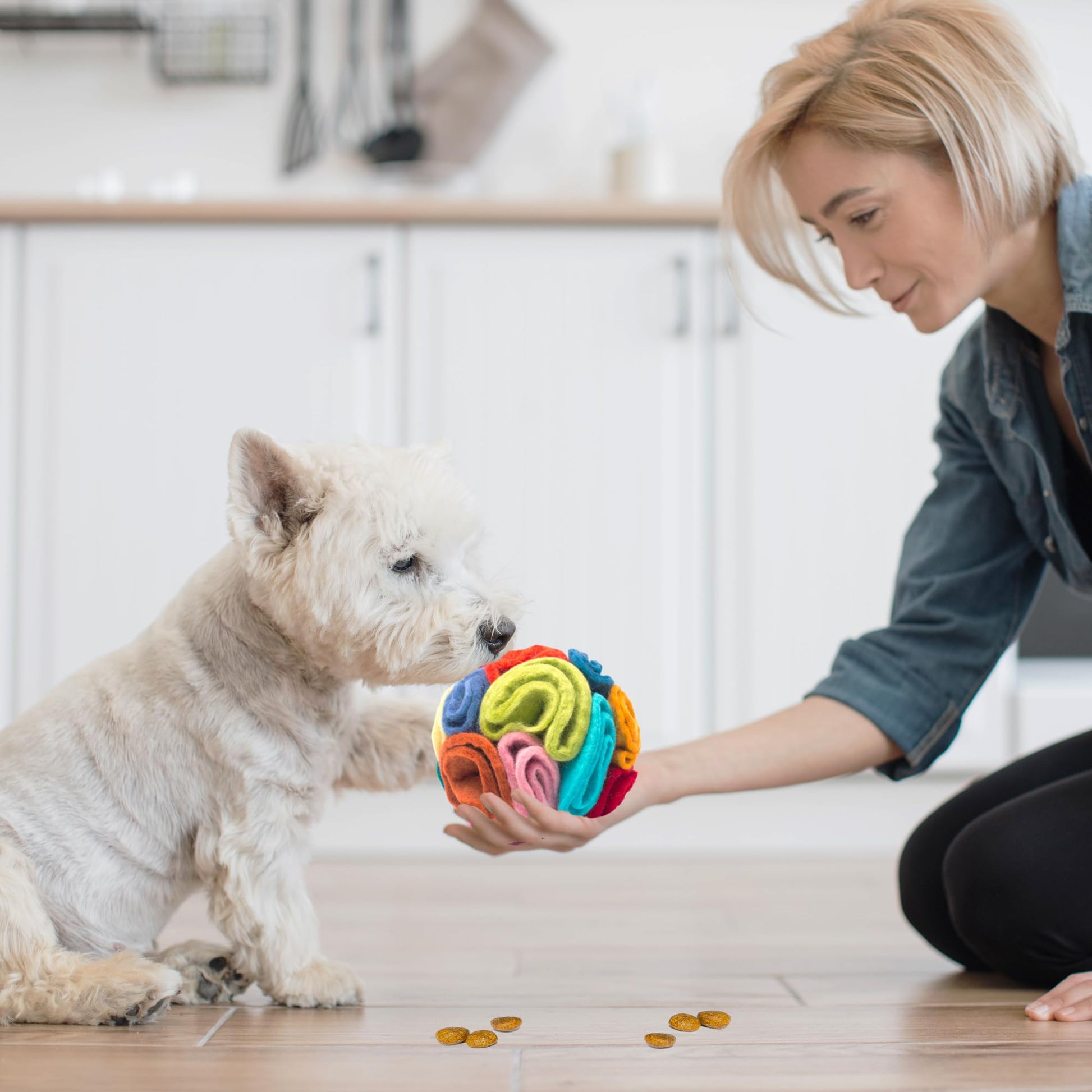 THOUGHTFUL GIFT FOR DOG LOVERS: Bright colors, interactive features, and durable materials make our snuffle ball for dogs a perfect gift for pet parents. Whether for a holiday, birthday, or just because, it’s an enrichment dog treat game any dog or puppy will love.