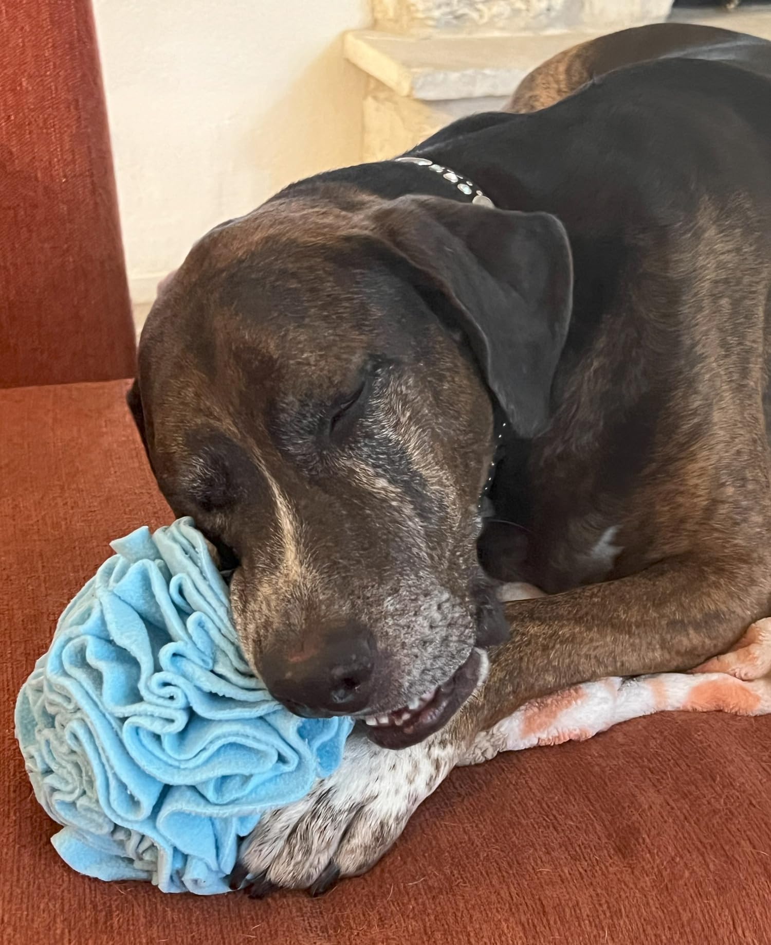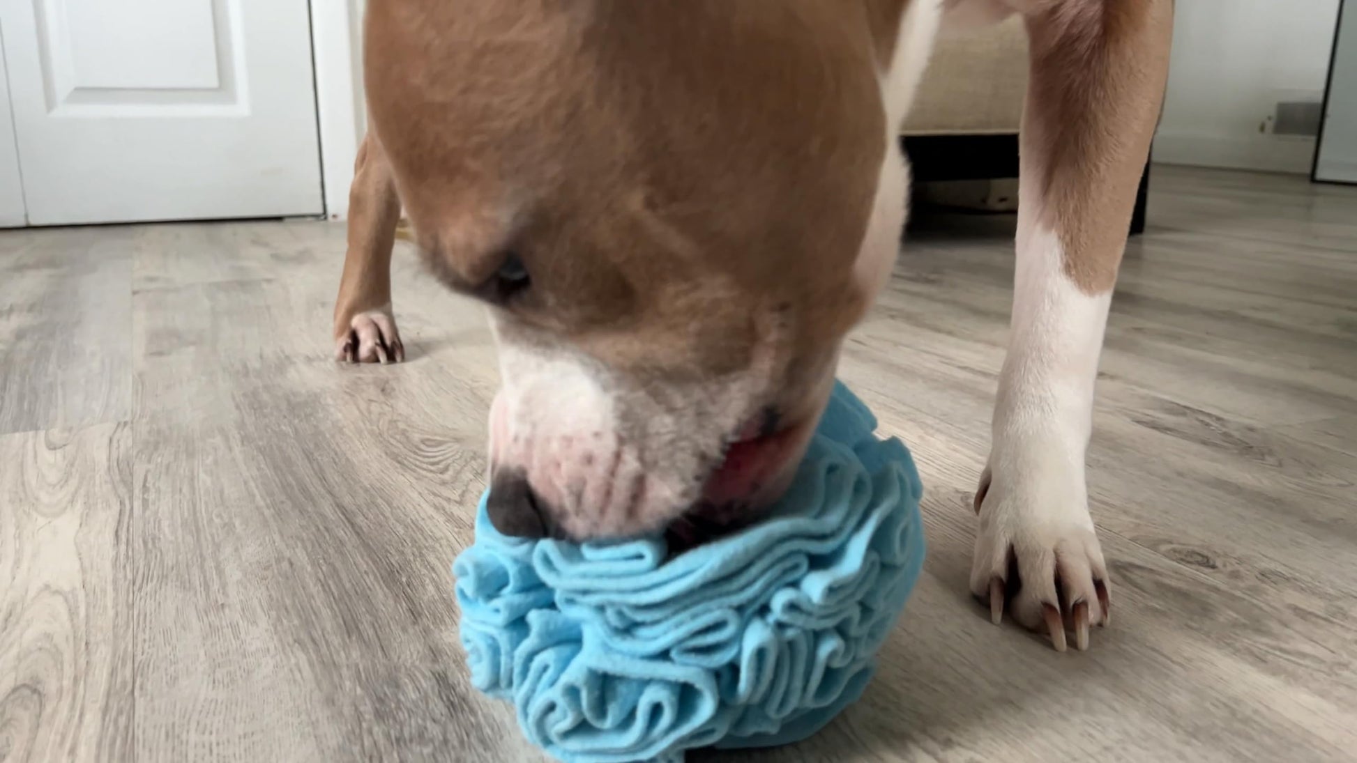 • It’s a snuffle mat reimagined for medium to large mouths. This hide-and-seek toy is a great way to keep your dog engaged and occupied while also helping them develop their sensory skills looking for hidden treats as a reward during playtime! Folds of soft polyester fleece fabric hold small treats or even kibble for way-sensitive noses to sniff out and discover, hitting puppy paw-fection: play, forage, and reward.