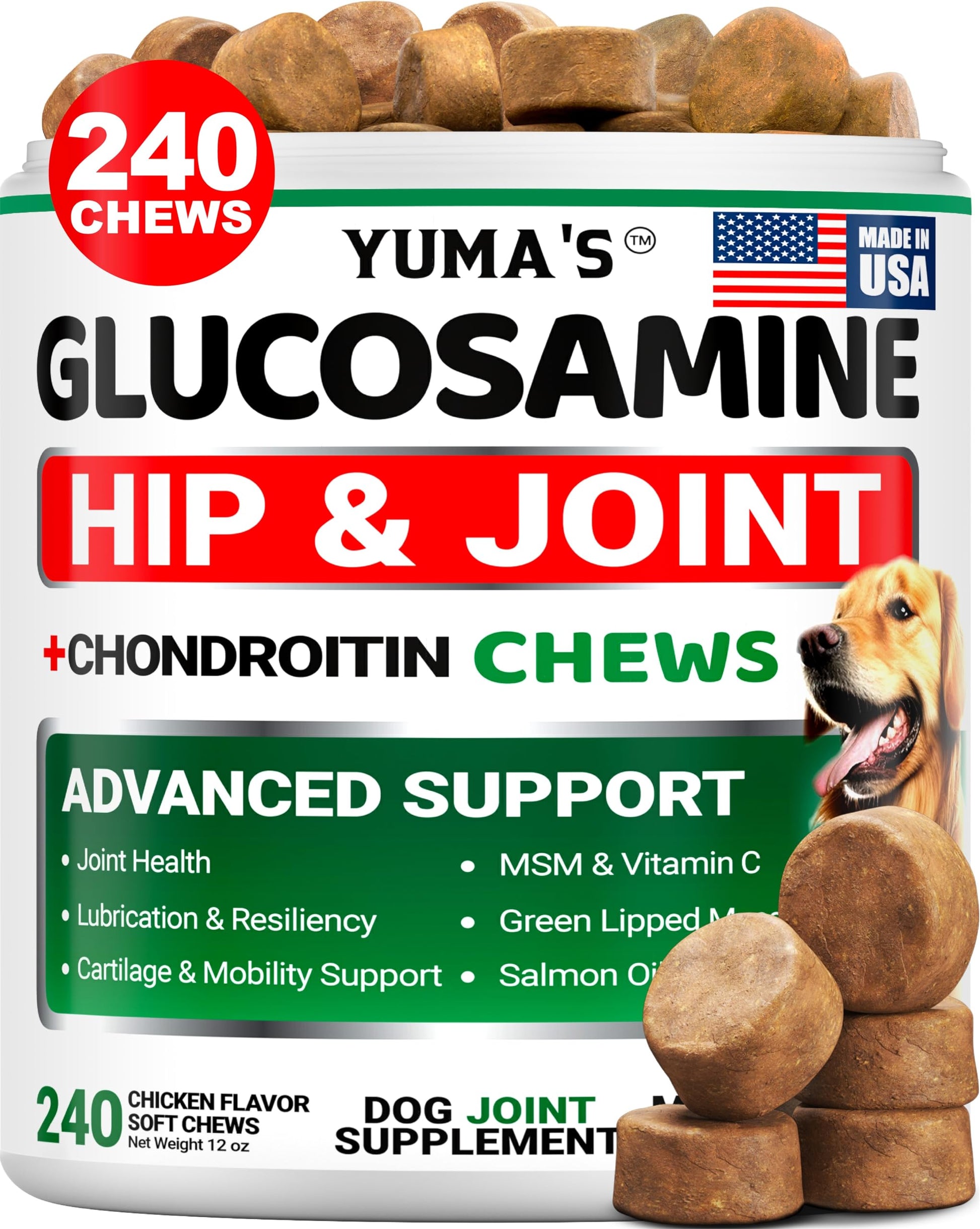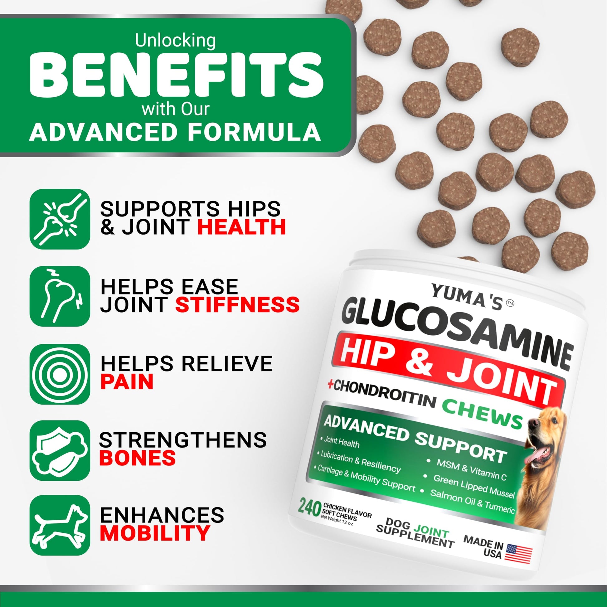 Glucosamine for Dogs - 240 Chews - Hip and Joint Supplement for Dogs - Advanced Glucosamine Chondroitin Treats with MSM - Joint Pain Relief - Large & Small Breed - Mobility Support - Made in USA