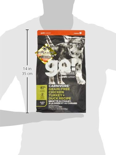 PROTEIN-RICH FOOD TO SUPPORT STRONG, LEAN MUSCLES: The first six ingredients and 87% of the protein in our grain free CARNIVORE Chicken, Turkey + Duck puppy food comes from real premium-quality meat + fish.