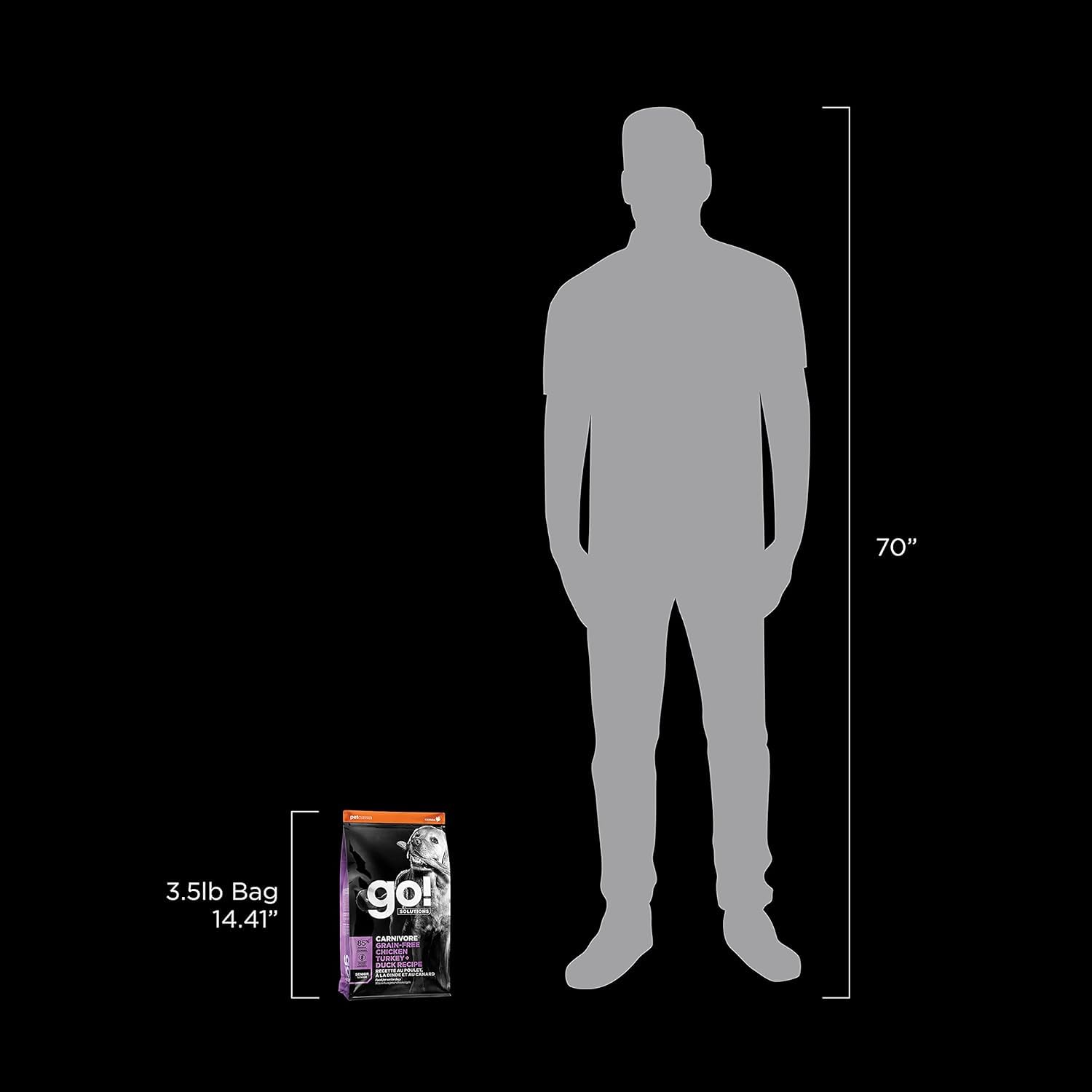Go! Solutions Carnivore, Grain-Free, Protein Rich Dry Dog Food, Chicken, Turkey and Duck Senior Recipe, 3.5 lb Bag