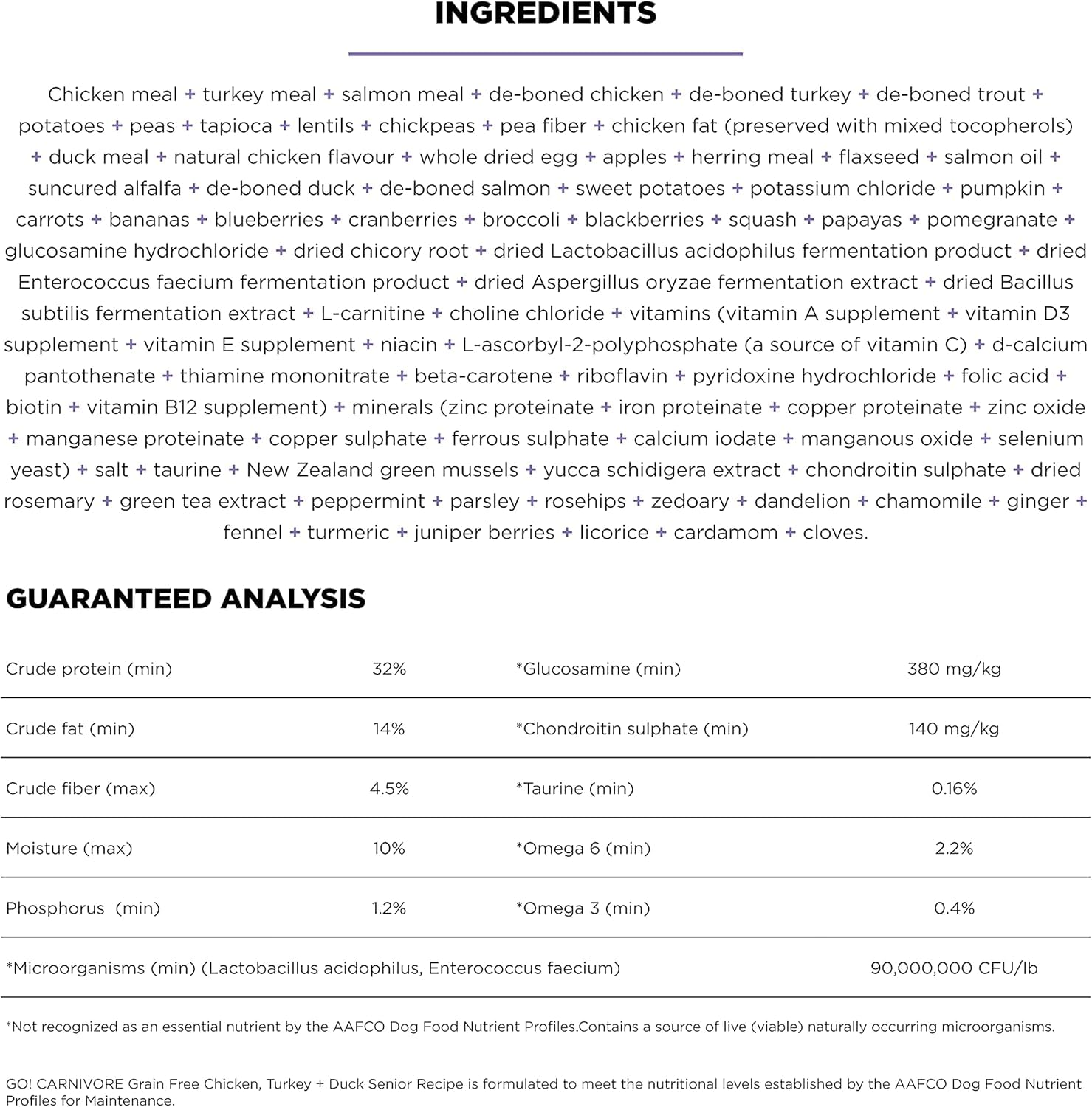 - PROTEIN-RICH FOOD TO SUPPORT STRONG, LEAN MUSCLES: The first six ingredients and 85% of the protein in our grain free CARNIVORE Chicken, Turkey + Duck Senior dog food comes from real premium-quality meat + fish.