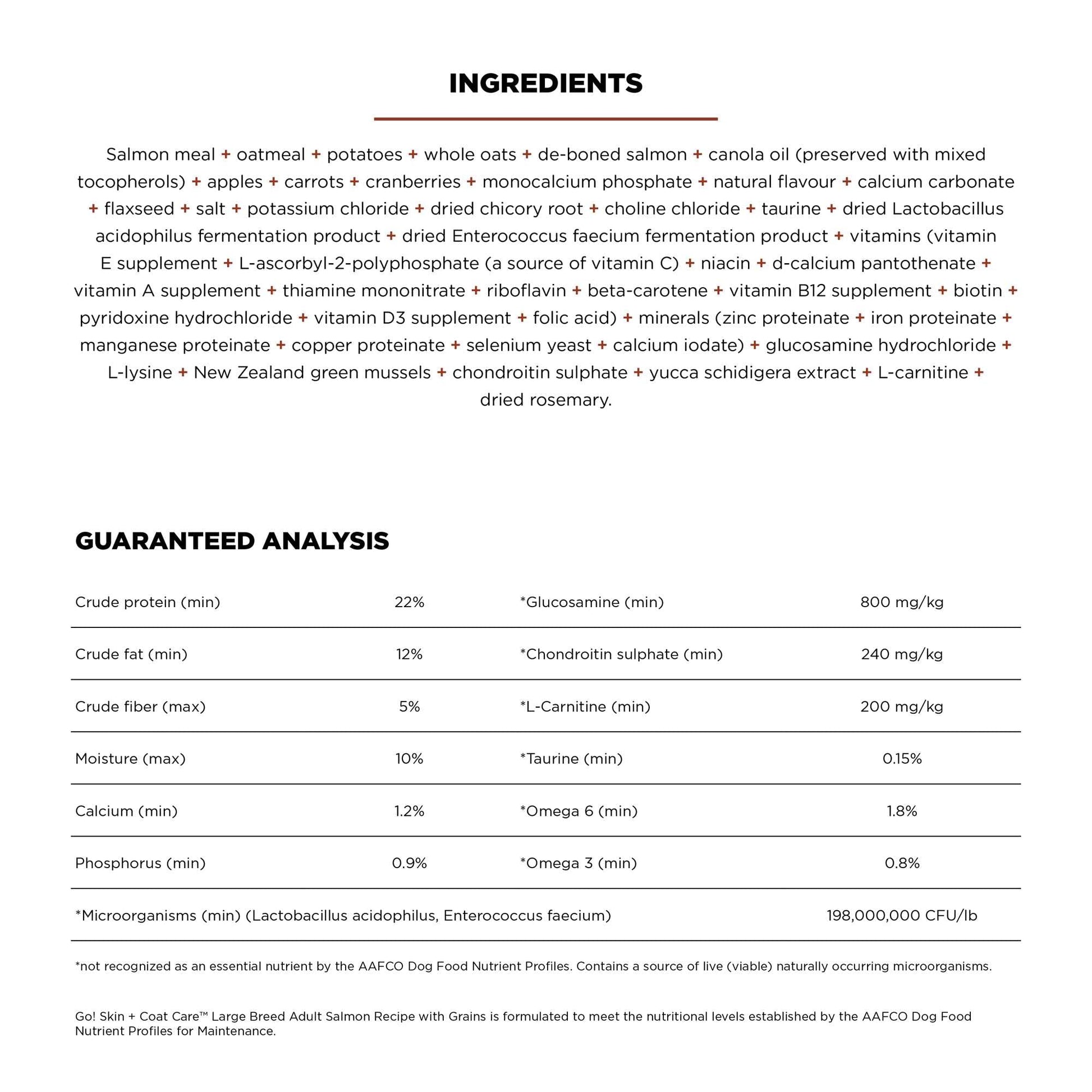 Go! Solutions Skin + Coat Care, Dry Dog Food, Large Breed Adult Salmon Recipe with Grains, 25 lb Bag