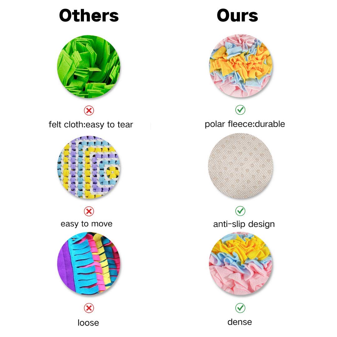 • ❤ SMART AND FLEXIBLE: This slow feeding mat feeds both their belly and their brain. Snuffle mats are designed to help the dogs' ability to forage for treats goodies, which is a real brain teaser. Our mat is designed for small dogs , puppies but can also be used by bunnies, kittens, cats, ferrets and mini pigs.