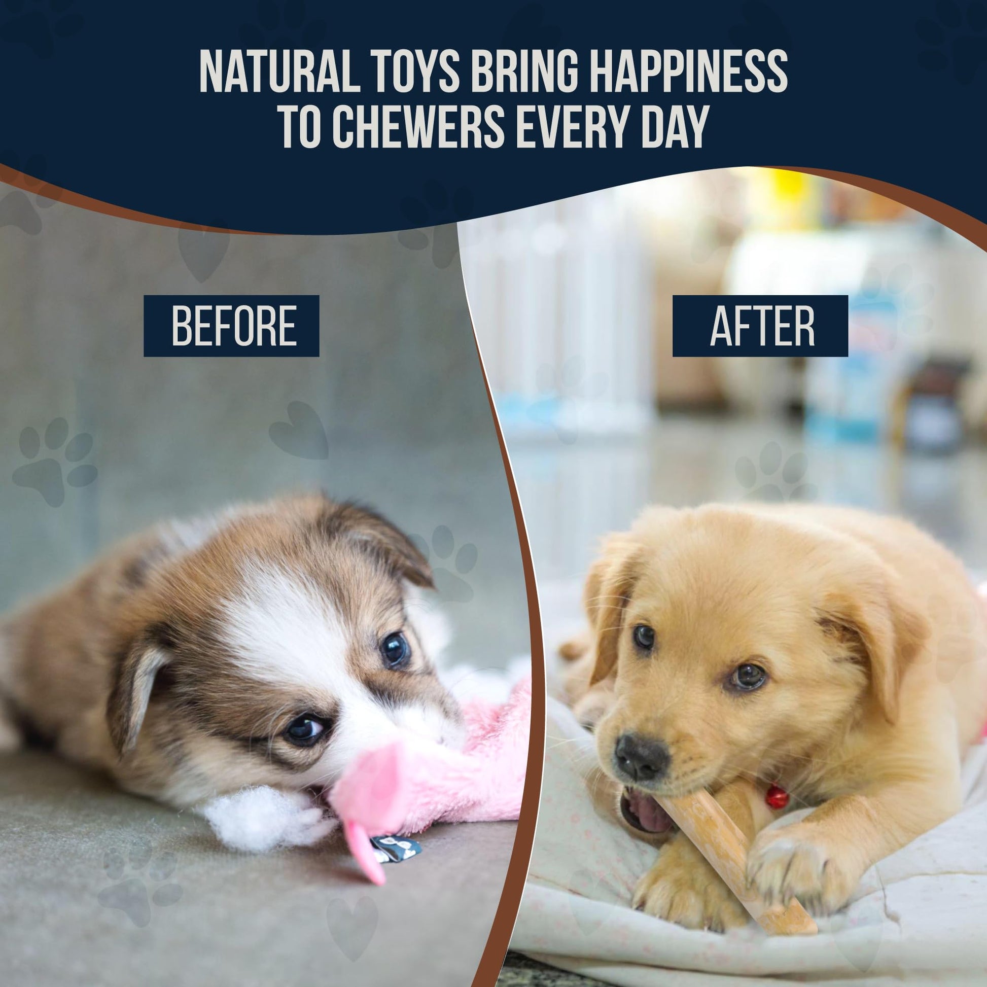 • 100% NATURAL DOG CHEW TOYS: Our real coffee wood dog chews are made entirely from natural materials. Each chew provides your pet with enjoyable chewing experience. As they gnaw on these toys, your puppy indulges in a chemical-free treat, promoting their overall health and happiness.