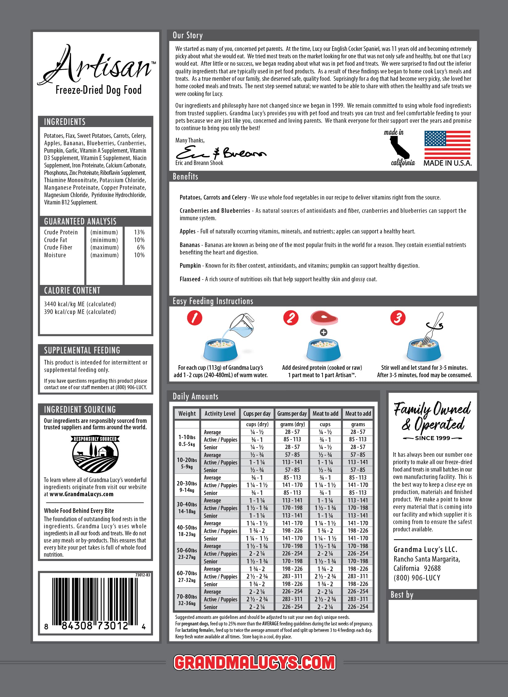 Our ingredients and philosophy have not changed since we began in 1999. We remain committed to using whole food ingredients from trusted suppliers. Grandma Lucy’s provides you with pet food and treats you can trust and feel comfortable feeding to your pets because we are just like you, concerned and loving parents.