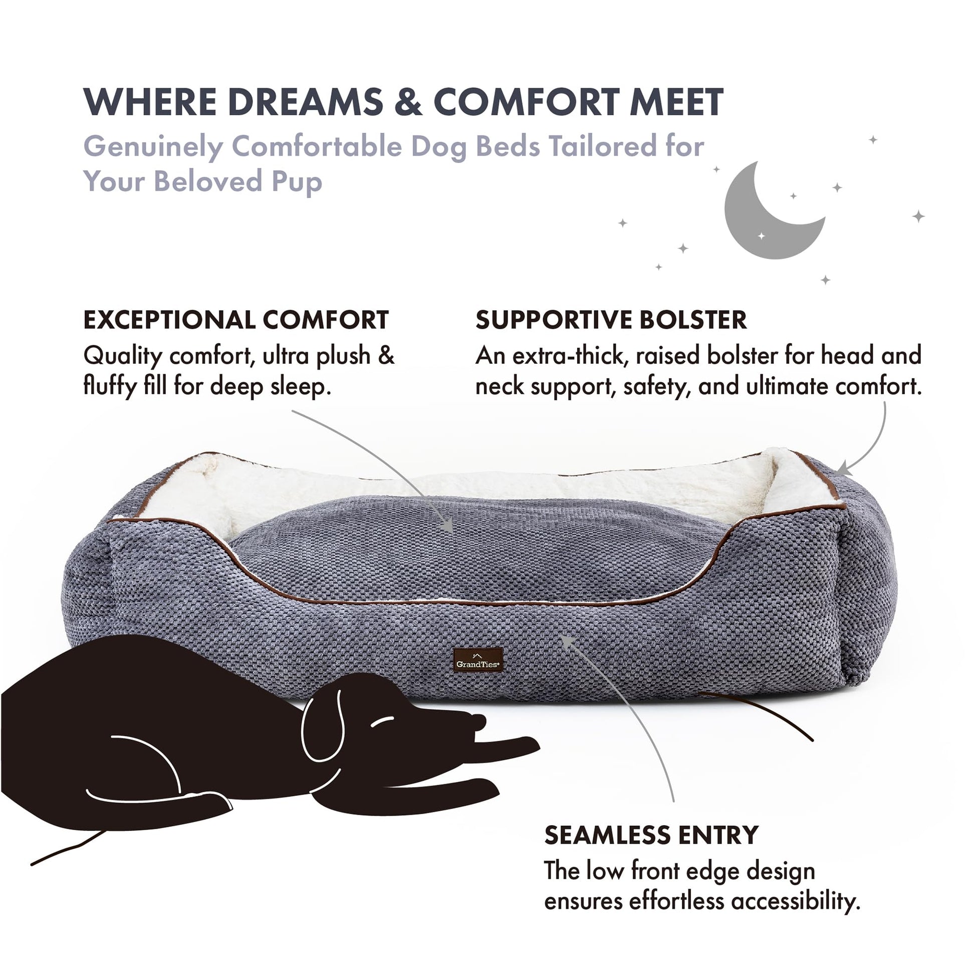 - LUXURIOUS COMFORT & CALMING - GrandTies plush and fluffy dog bed is super soft, making it softer and comfier than most competitors. The high-quality plush faux fur lining creates a soothing environment, leading to a friendlier, calmer, and less anxious pet. Features a low front edge design ensuring easy access for your pet.