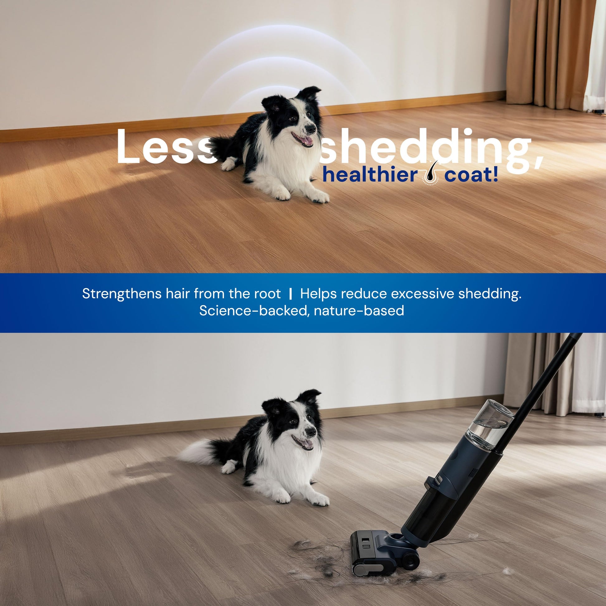 • Targets Shedding & Boosts Growth – This natural dog shampoo for hair loss is enriched with grape seed extract and aloe vera, stimulating hair follicles and supporting coat renewal. Ideal to support a dog hair loss treatment.