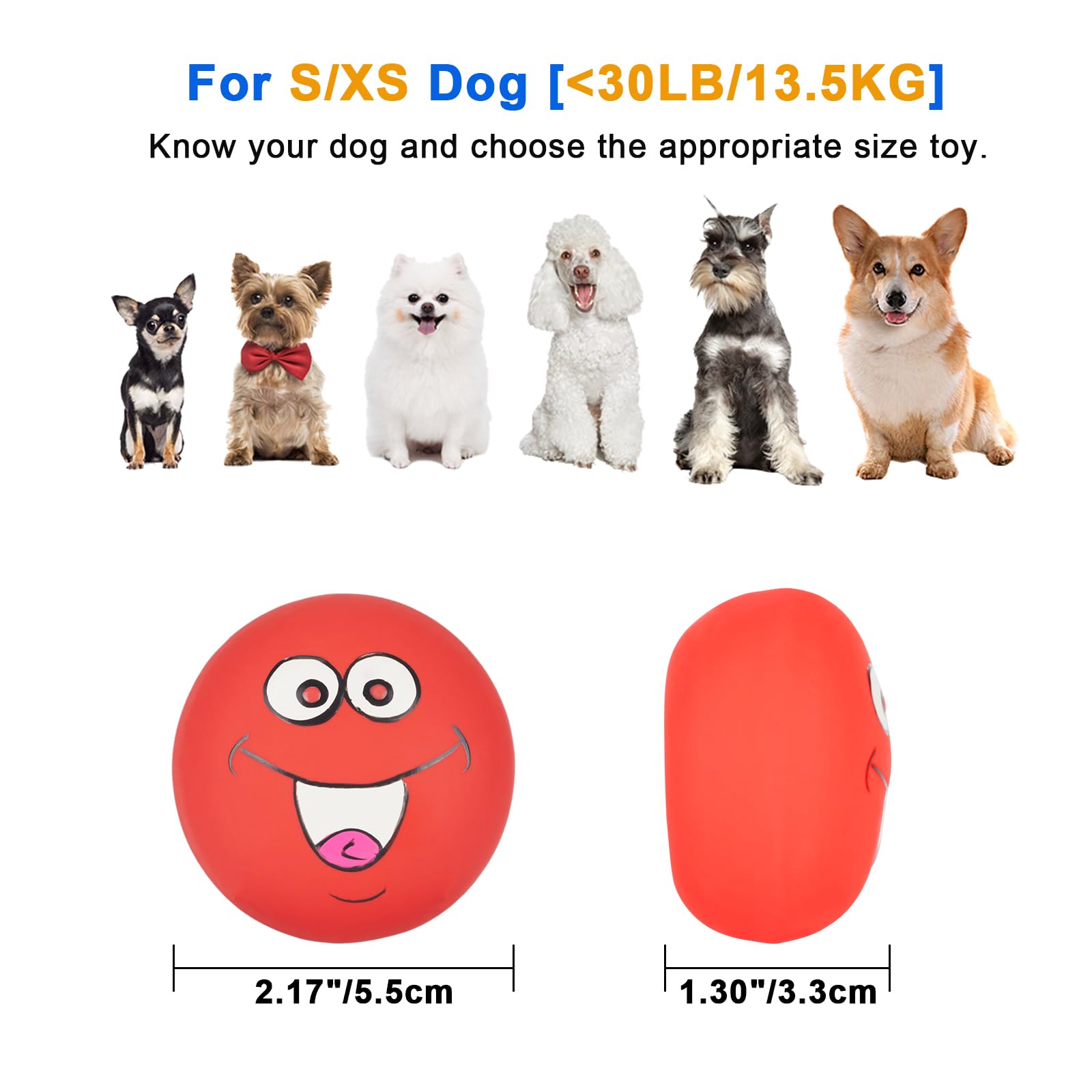 • 【Dog Toys Set with Smiley Face】 6 PCS toys with funny expressions to keep doggies entertained, no need to worry about toys lost under the couch. If you have any problem with your purchase, please feel free to contact us and we will reply asap.