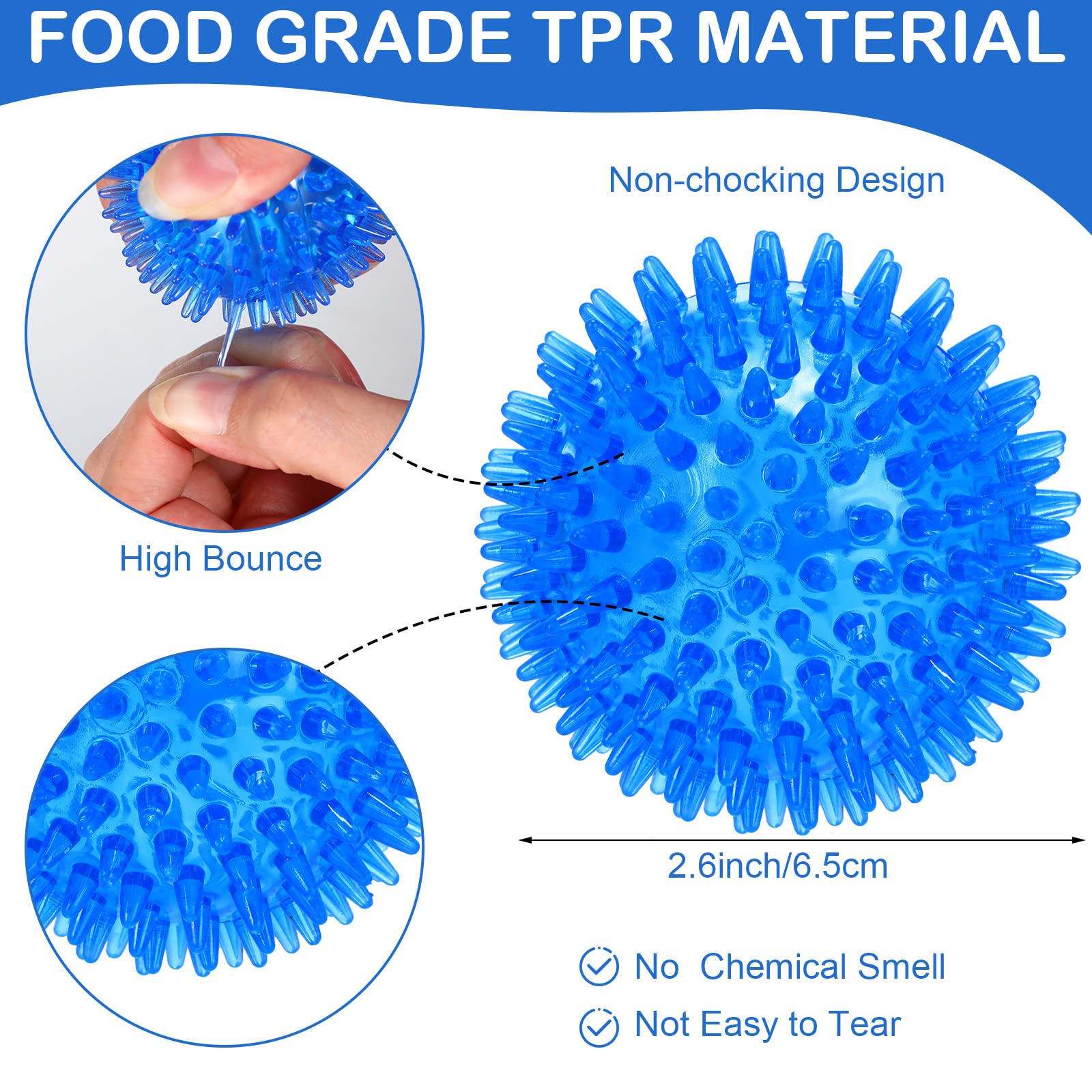 • Safe and Soft Material: squeaky dog ball is made of TPR rubber, safe, odorless and not easy to break; The spikes on ball increase friction and will not cause choking hazard, ideal for your puppy