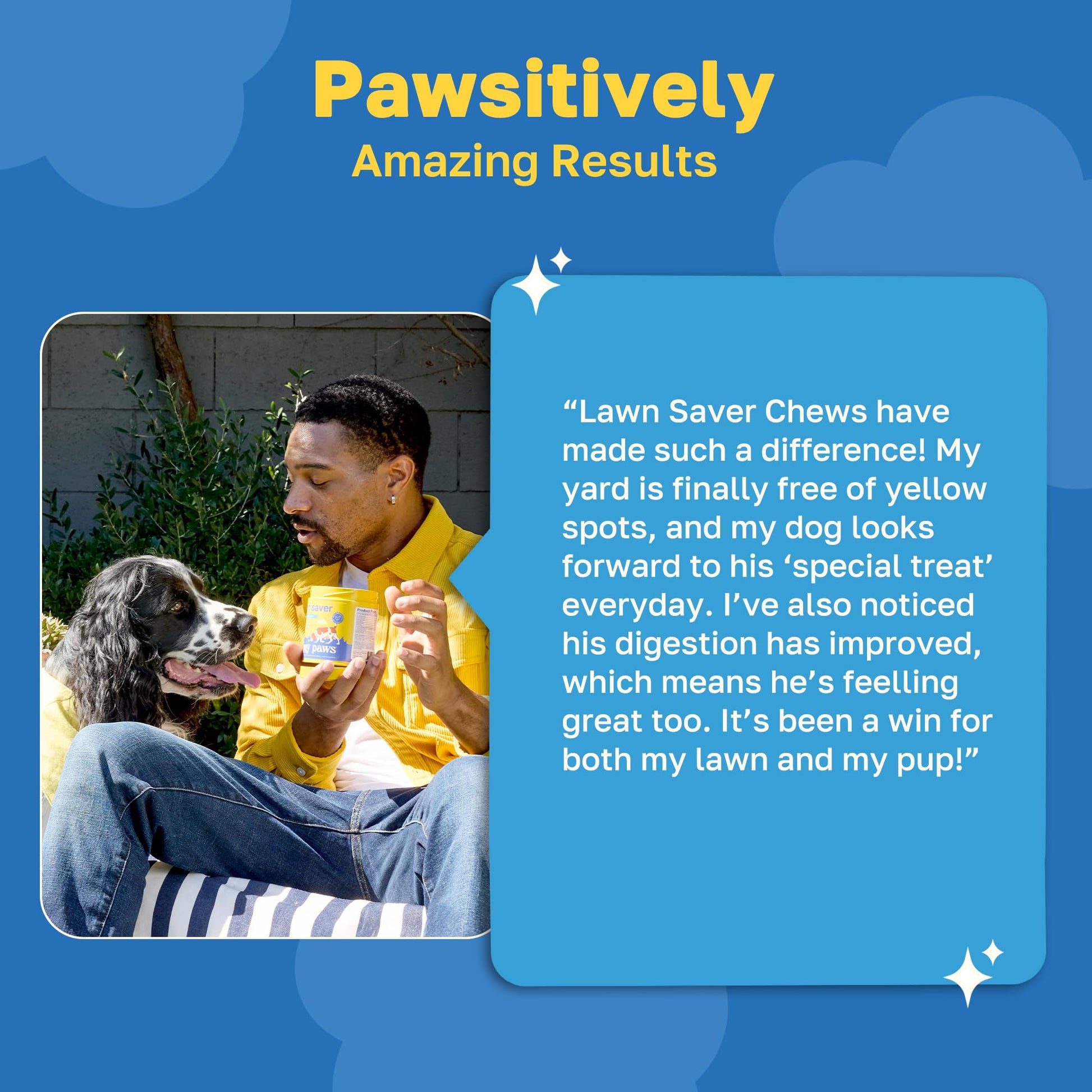 • LAWN CARE & PET WELLNESS IN ONE: Keep your grass looking great with Happy Paws Lawn Saver Chews, designed to support a balanced urine pH. Made with natural ingredients, these soft chews help maintain your pup’s well-being while protecting your lawn from unsightly spots. A simple way to care for your pet and your yard at the same time.