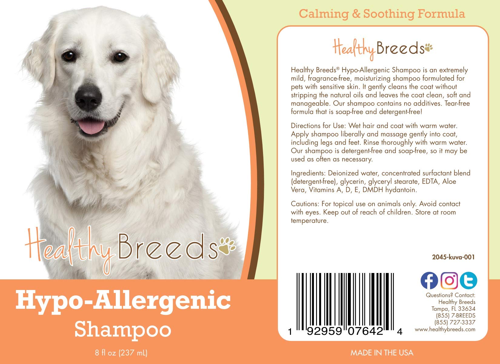 Healthy Breeds hypo-allergenic shampoo is an extremely mild, fragrance-free, moisturizing shampoo formulated for pets with sensitive skin. It gently cleans the coat without stripping the natural oils and leaves the coat clean, soft and manageable. Our shampoo contains no additives. Tear-free formula that is soap-free and detergent-free!