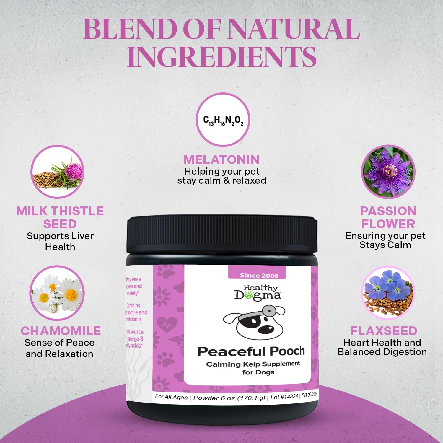 Premium-Quality Dog Supplements: Peaceful Pooch also helps with a range of common canine health concerns, including itchy or dry skin, digestive issues and mobility. As an anti-anxiety supplement for dogs, it supports your dog's overall well-being with premium-quality ingredients, making it one of the top calming supplements for dogs.