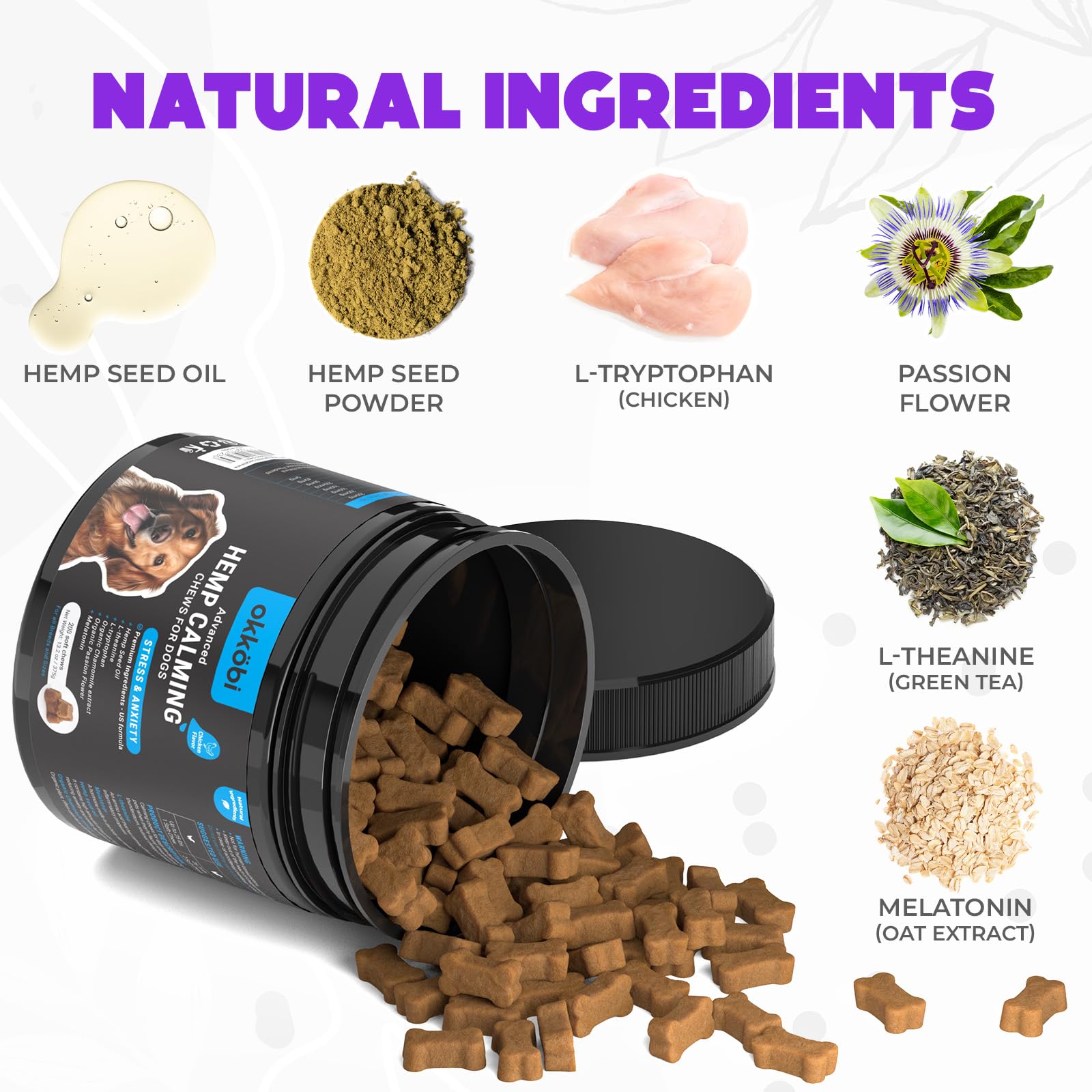 • 【Natural Ingredients, Safe and Sound】 Our composure dog calming chews are packed with premium ingredients including Hemp Seed Oil, Hemp Seed Powder, L-theanine (Green Tea), L-tryptophan, Dog Vitamin B9 (Folic Acid), Passion Flower extract, Chamomile extract, and Melatonin. These treats offer natural, safe, and effective anxiety relief for dogs. Vet-approved for peace of mind!
