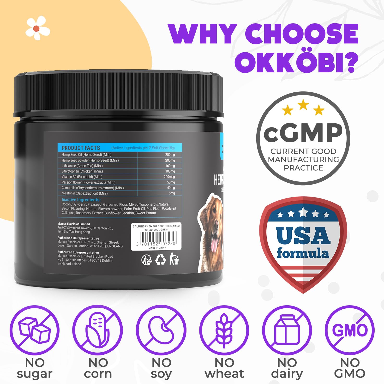 Hemp Calming Chews for Dogs Anxiety 200 pcs - Chicken Flavored - Dog Anxiety Relief - Dog Calming Chews - Melatonin for Dogs - for Stress, Travel, Check-up, Barking or Grooming - Dog Calming Treats