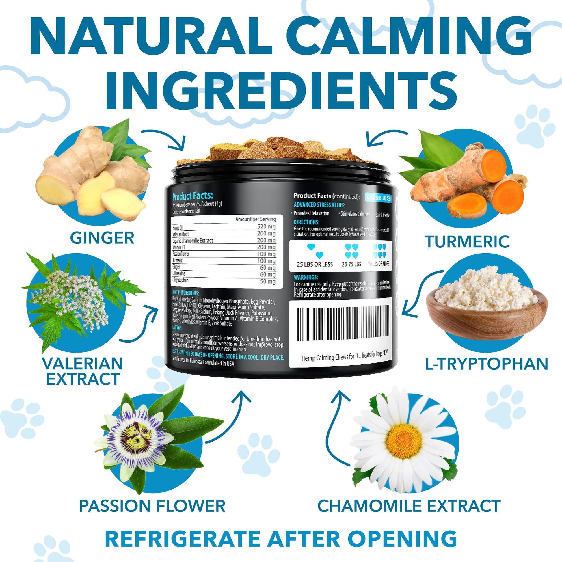Relieves Stress & Anxiety - Our Dog Calming Treats will keep your furry friend calm and composed during stressful situations, such as visits to the vet, long road trips, or being left alone at home