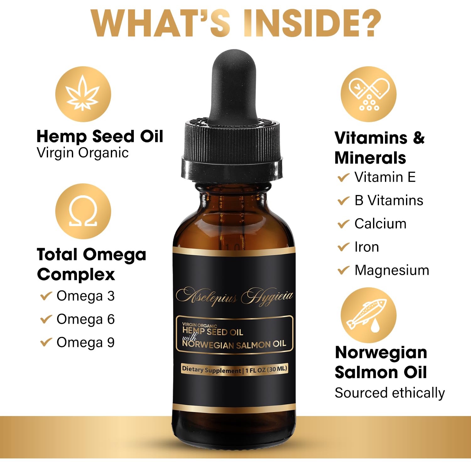INGREDIENTS: Virgin Organic Hemp Seed Oil Norwegian Salmon Oil