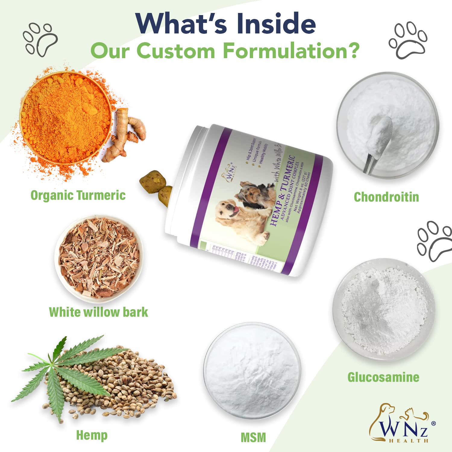 - Taste Your Dog Will Love: WetNozeHealth hemp dog treats for joints are sourced from natural extracts of hemp and turmeric for dogs and have a delicious chicken and bacon flavor. This hemp for dogs is flavored naturally and also contains organic Palm fruit oil & oat flour for natural health benefits.