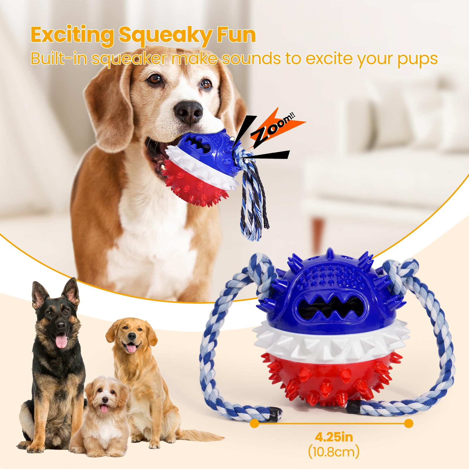 • Squeaky Dog Chew Toys For Teething Cleaning: Equipped with a built-in squeaker, this squeaky dog balls satisfy your dog's natural urge to bite while providing an exciting sound they love. Various ridges and bumps on the surface of the dog enrichement toys for large dogs can effectively help your dog clean teeth, reduce tartar without hurting gums. Great alternative to hard dog chew toys. Great for reducing destructive chewing behavior