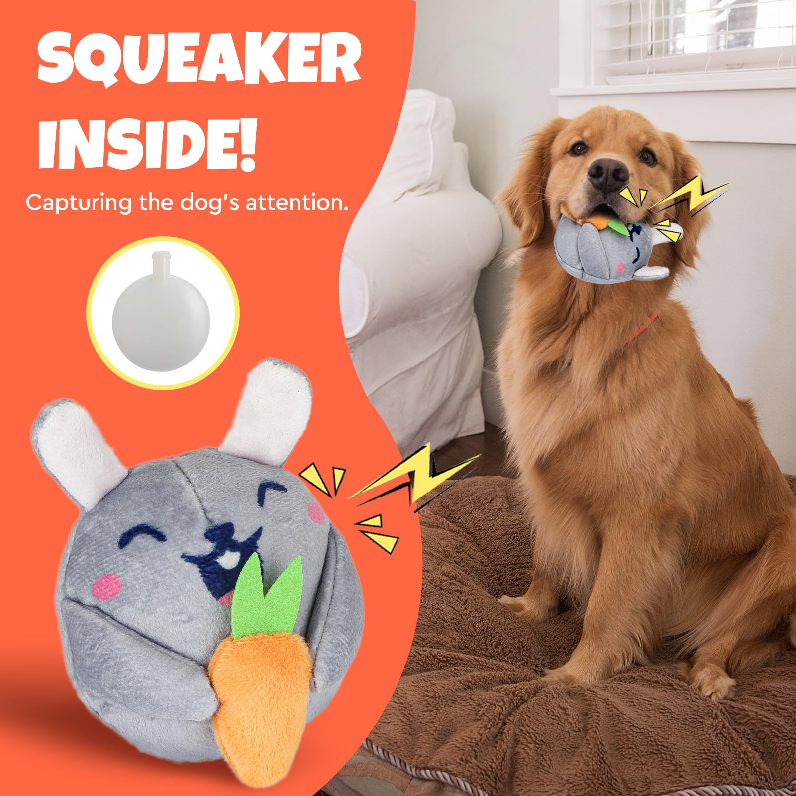• Squeaker Inside: Three cute bunnies inside the carrot build-in squeakers , when our puppy presses on it that will make out a funny noise to make our puppy exciting. Take out squeaky dog toy with our puppy to go for a walk or a travel