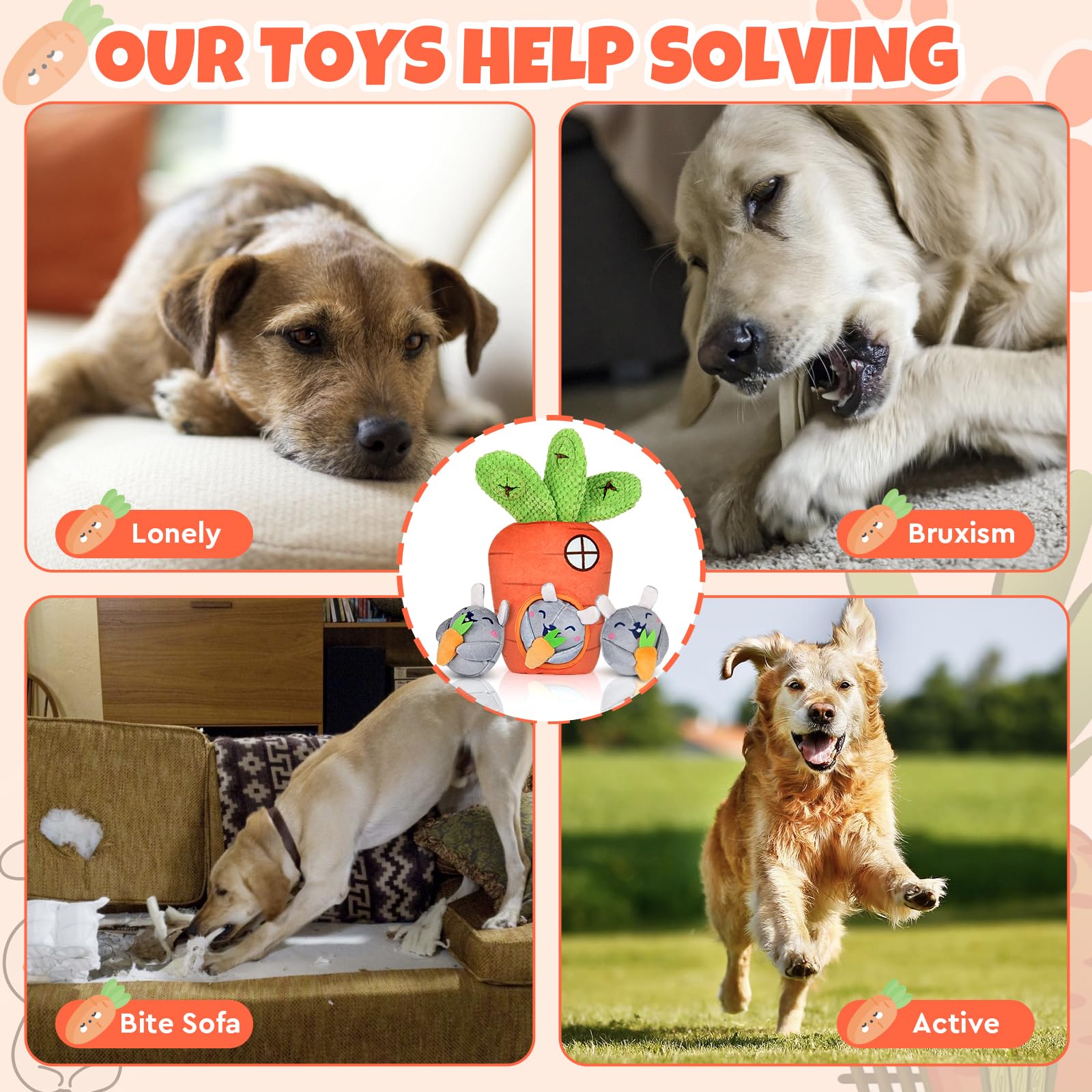 • Excellent Gift: This hide and seek carrot and bunny set,your dogs will more interested in pulling the bunnies out of the carrot and carrying them around.The dog toy is excellent gift for an birthday, Thanksgiving ,Christmas or Valentines day etc.