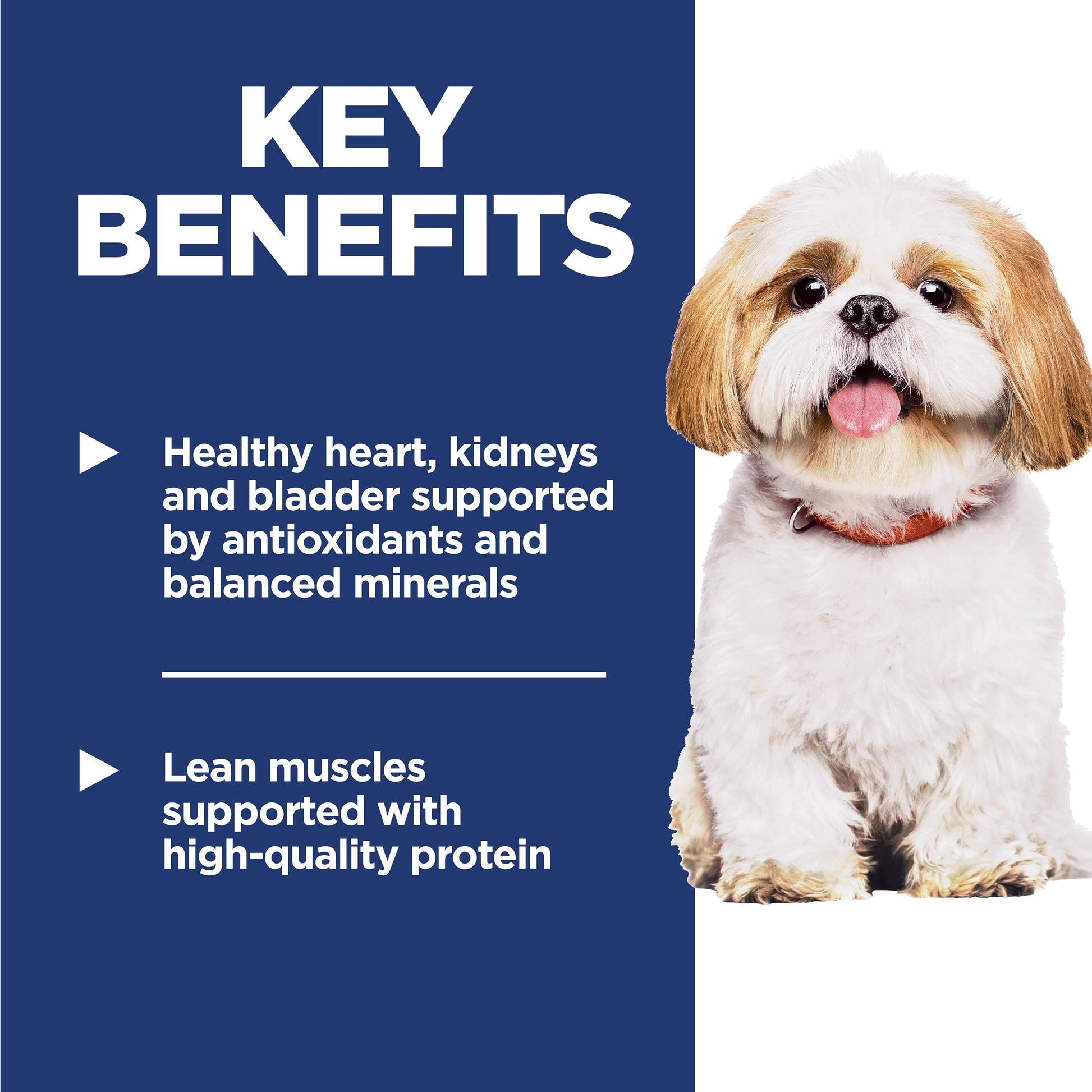 As little or toy breed dogs get older, their nutrition needs change. Hill's Science Diet Adult 7+ Small Bites dry dog food is formulated for specific aging needs of small dogs age 7 and older. The delicious chicken flavor is packed into a tiny kibble for those little dogs that prefer variety, and the easily digestible ingredients help support the energy levels of mature dogs. This dog food made with natural ingredients contains a balanced set of minerals for immune system support as well as heart and kidney health. To help your dog keep healthy skin and a shiny coat, this premium dog food provides omega-6 fatty acids & Vitamin E. There’s more to love with the new look of Science Diet. Some of our products also have new names, new kibble shapes & new formulas.