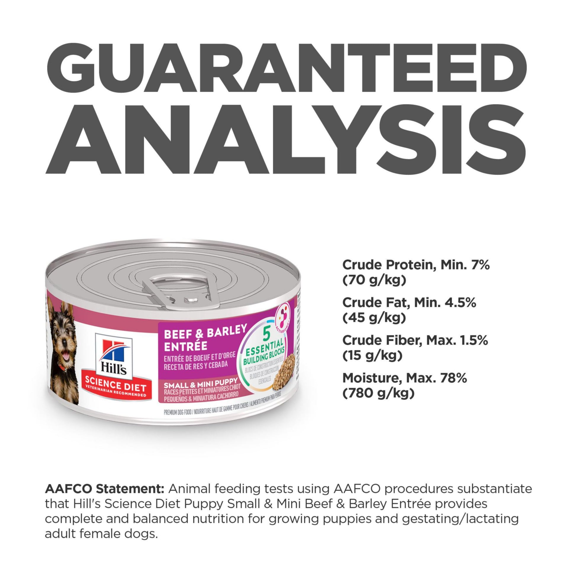 Details: Hill's Science Diet Puppy Small & Mini Beef & Barley Entrée dog food is tailored nutrition for the developmental needs of Small & Mini puppies, so they get the best start in life & grow to their full potential. Made with delicious ingredients that provide precisely balanced nutrition to support 5 essential building blocks for lifelong health, including digestion and immune system support.