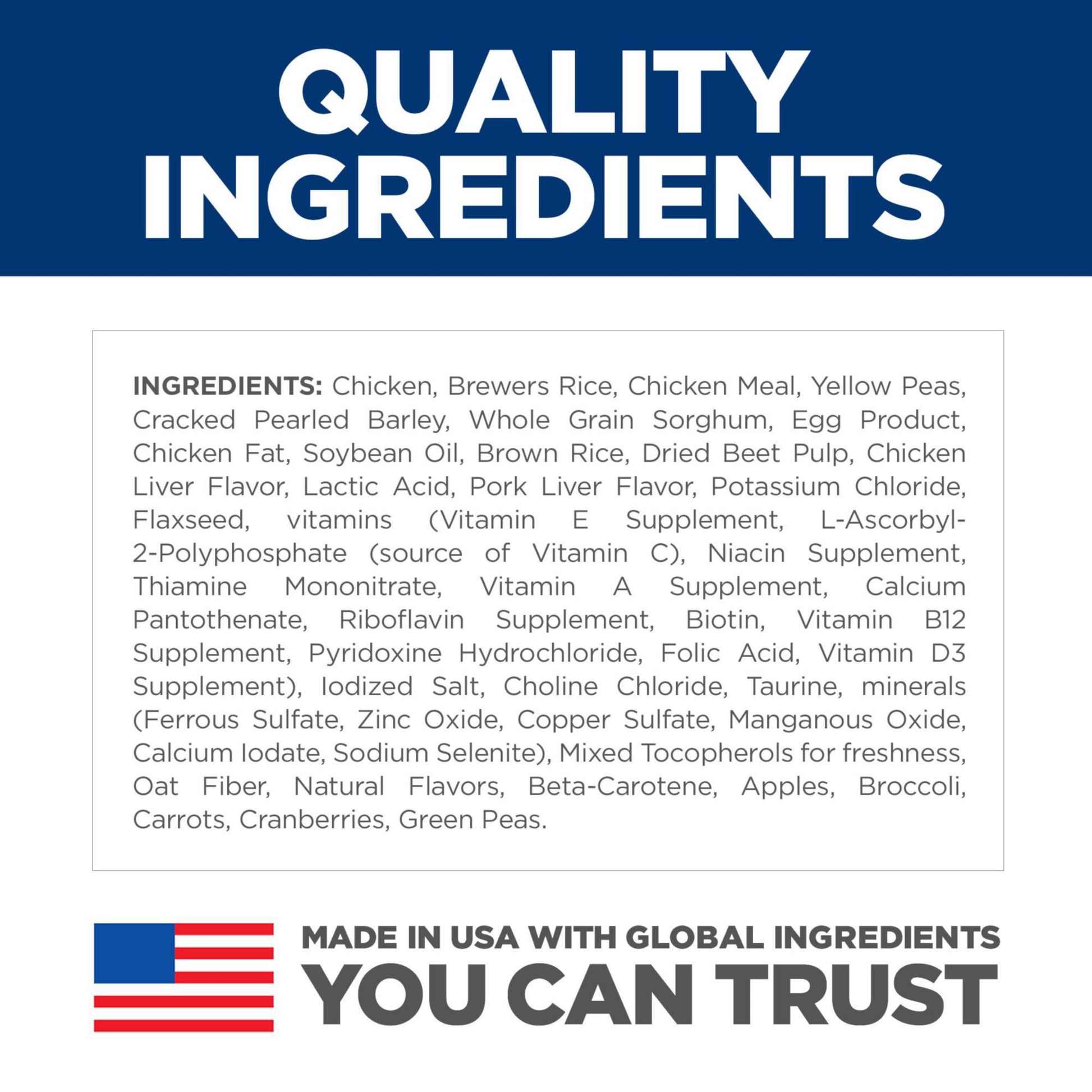Details: Your grown dog wants to feel as good as he or she looks. Hill's Science Diet Sensitive Stomach & Skin Large Breed Dog Food is specially formulated for optimal digestive health. This dog food for sensitive stomachs uses prebiotic fiber to fuel gut bacteria and support a balanced microbiome. In addition, this dry dog food made with natural ingredients also provides an excellent source of vitamin E and Omega-6 fatty acids to nourish your dog's skin, and help maintain a healthy, shiny coat. This digestive care food is formulated with decades of cutting-edge research to be a great-tasting meal adult dogs can truly enjoy. There’s more to love with the new look of Science Diet. Some of our products also have new names, new kibble shapes & new formulas.