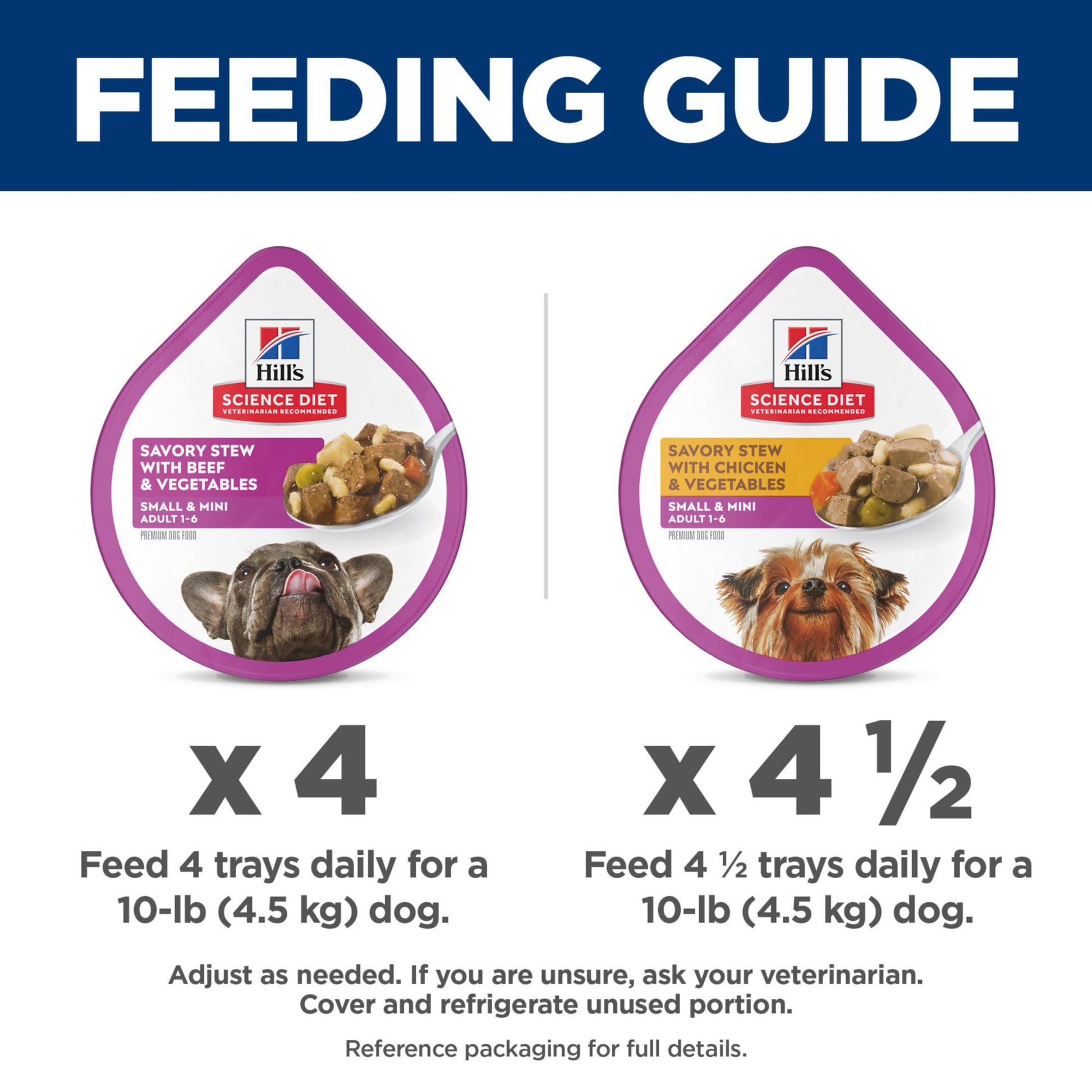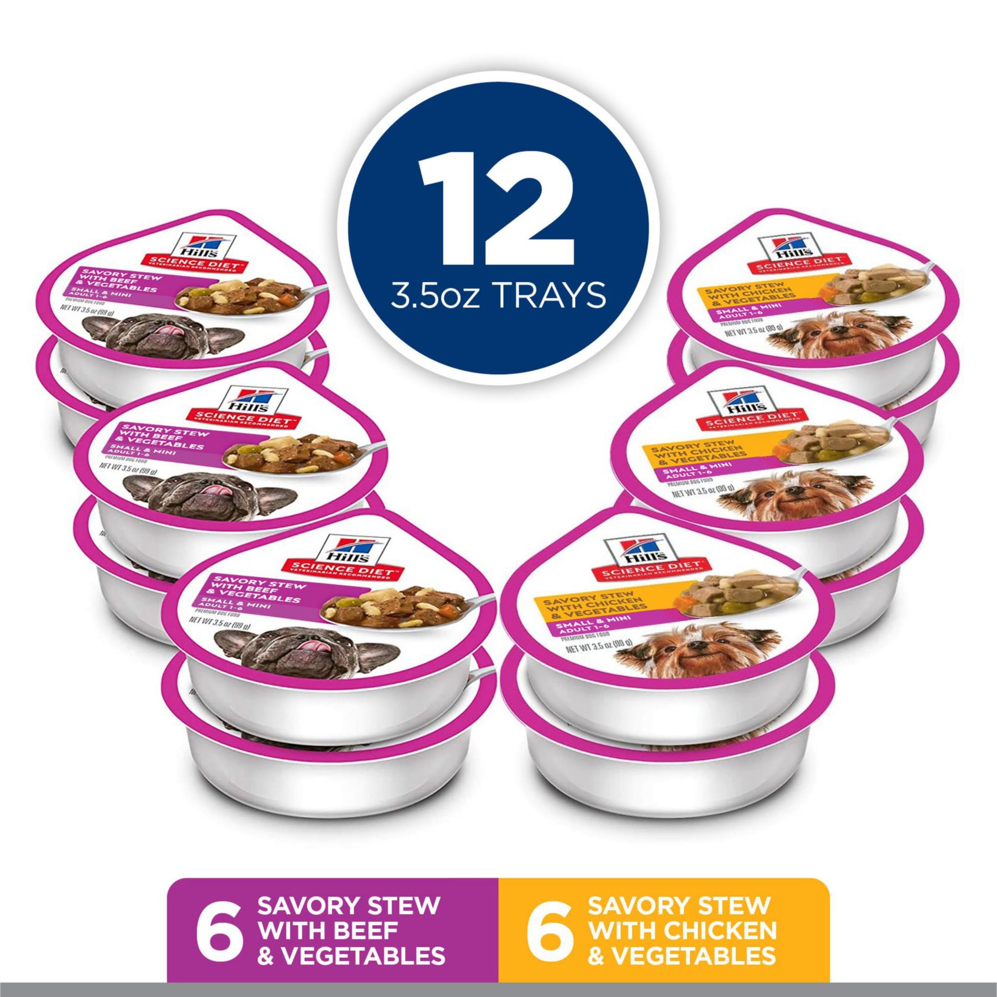 Hill's Science Diet Small & Mini, Adult 1-6, Small & Mini Breeds Premium Nutrition, Wet Dog Food, Variety Pack: Chicken & Vegetables; Salmon & Vegetables Stew, 3.5 oz Tray Variety Pack, Case of 12