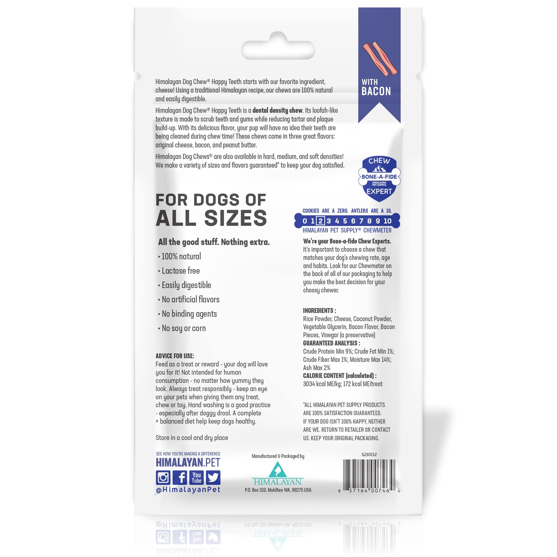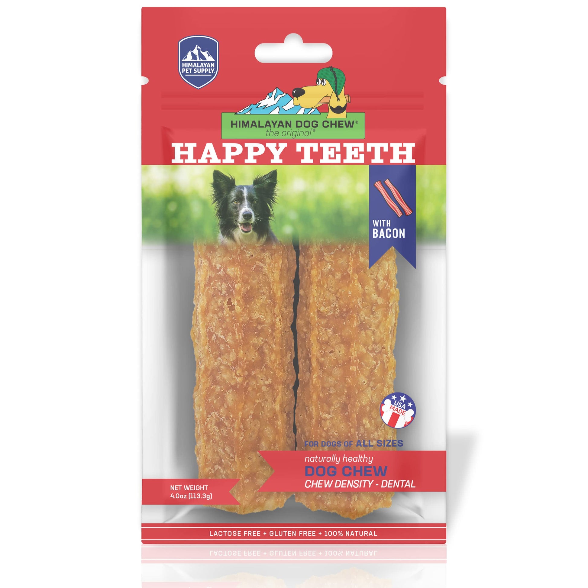 Himalayan Dog Chew Happy Teeth Yak Cheese, Soft Dog Chews, 100% Natural Soft Density Dental Treats, Gluten Free, Safe Treats for Oral Health, Lactose & Grain Free, Protein Rich, Bacon, 2 Count