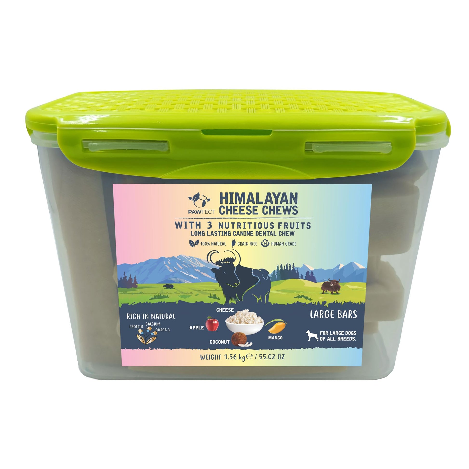 Himalayan Dog Chews Long Lasting - Apple, Coconut, Mango (55oz, Multipack of 10 in a Tub) Yak Cheese Dental Chews for Dogs | Promotes Healthy Teeth & Bones | Healthy Dog Treats for Large Dogs