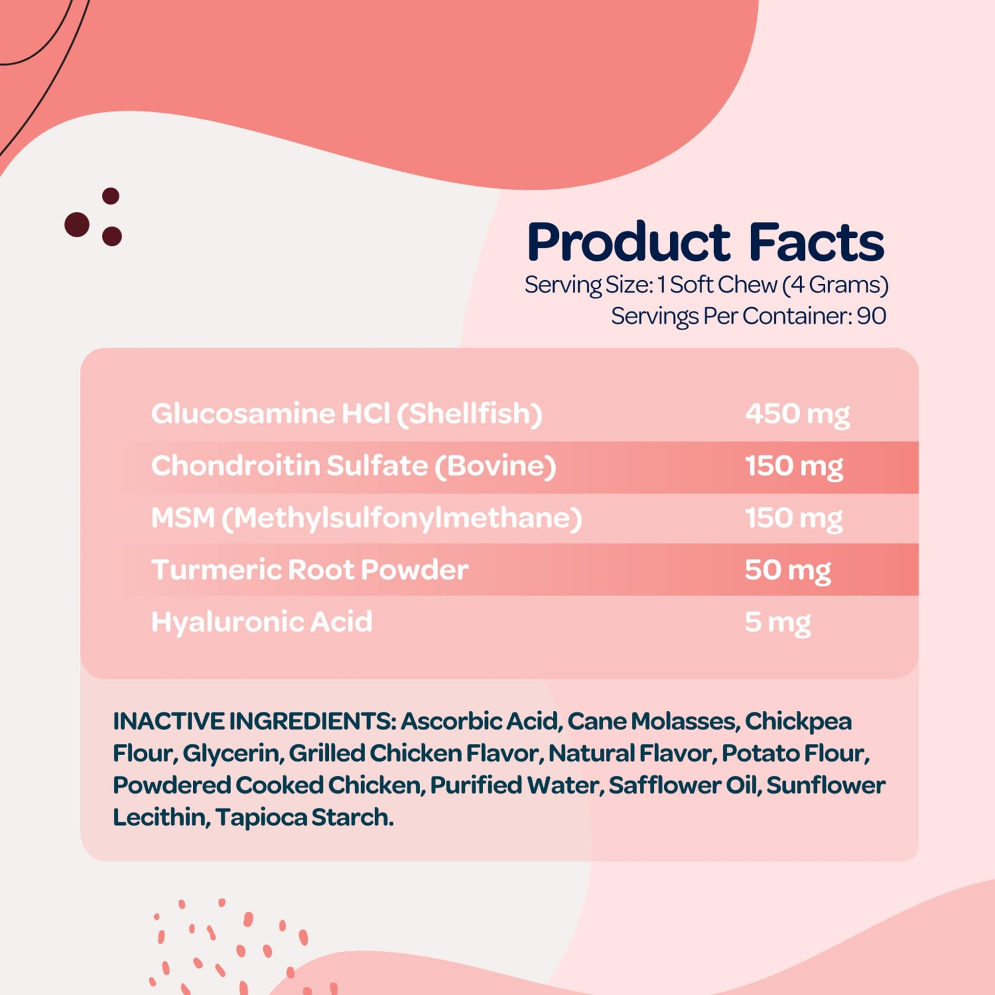 Hip and Joint Chews for Dogs | Dog Glucosamine Chews for Comfort & Mobility with Chondroitin MSM & Turmeric | Dog Joint Supplement for All Ages & Sizes | NASC Certified & Made in The USA | 90 Chews