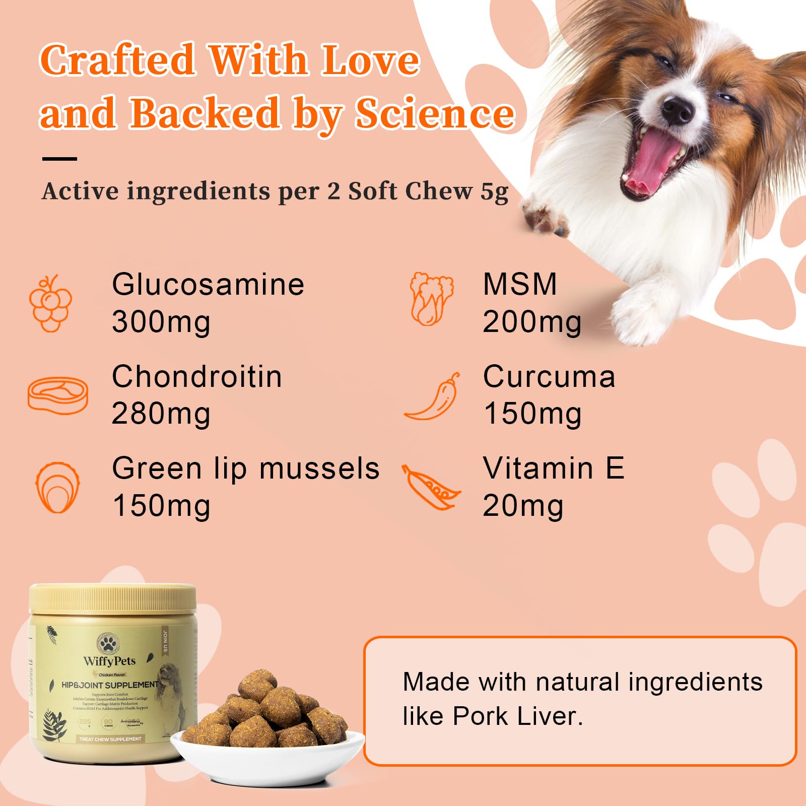 - Delicious soft chews that dogs love! No more struggle—our hip and joint supplements are tasty treats, easy to digest for both puppies and seniors. A daily treat your dog will eagerly enjoy while supporting joint health.