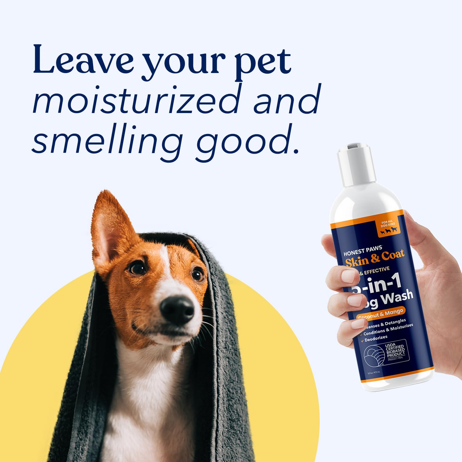• Five Benefits In One Wash - Cleans, deodorizes, conditions and detangles coat, moisturizes skin-- Honest Paws Skin and Coat 5-in-1 Dog Wash is a one-step and easy to use premium dog wash. It is all you need to keep your dog’s fur and skin soft, moisturized and clean.