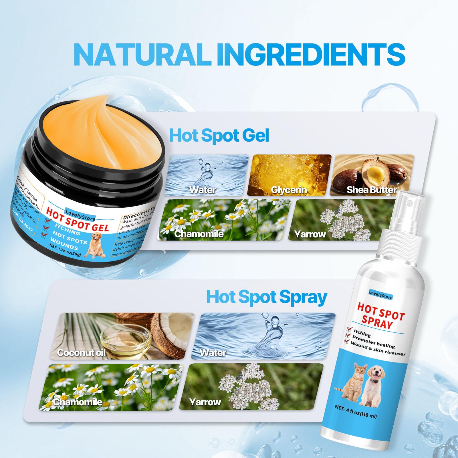 • SOOTHES & REPAIRS IRRITATED SKIN: The hot spot gel forms a protective barrier, reduces itching, and speeds up recovery, while the spray cleanses wounds, moisturizes dry skin, and strengthens the skin barrier to prevent further irritation