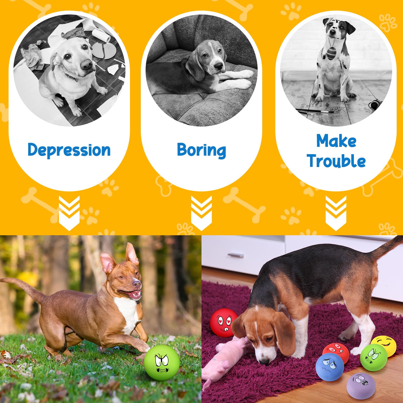 • Funny Design and Vibrant Colors: these dog squeaky toys have a charming design; They are round with bright, vivid colors and various expressions like smiles, sadness, and anger printed. Their funny patterns and vibrant colors easily attract pets' attention, making playtime more fun. When your dog is feeling bored or lonely, you can use these dog toys to interact with them, providing endless entertainment