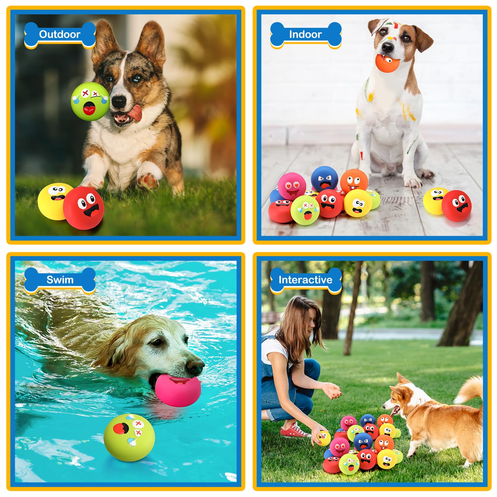 Squeaky Toys for Small Dogs: you will get 12 pcs dog squeaky balls, 6 styles with different expressions; The size is 2.2 inches x 2.2 inches x 1.3 inches, suitable for small dogs, mini dogs to chew and play, such as Schnauzer, Poodle, Corgi, Pug, Yorkshire Terrier, Chihuahua