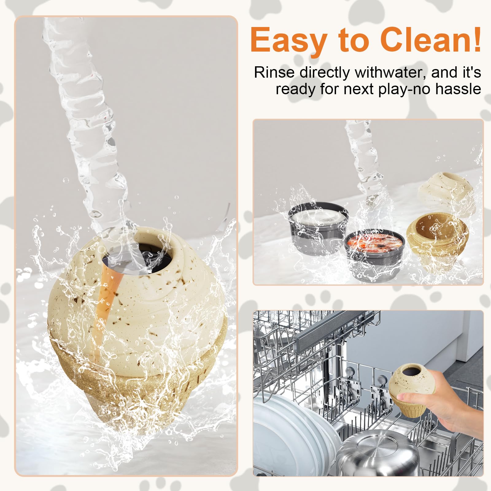 • 5. Easy-to-Clean & Hygienic Food Dispenser :This dishwasher-safe treat dispensing dog toys features a one-piece molding process and a wide-mouth design for easy filling with all kinds of treats. Designed for busy pet owners, its detachable components + smooth, non-stick interior support 3 cleaning methods: ✓ Dishwasher-safe ✓ Quick water rinse ✓ Wipe-and-go cleaning