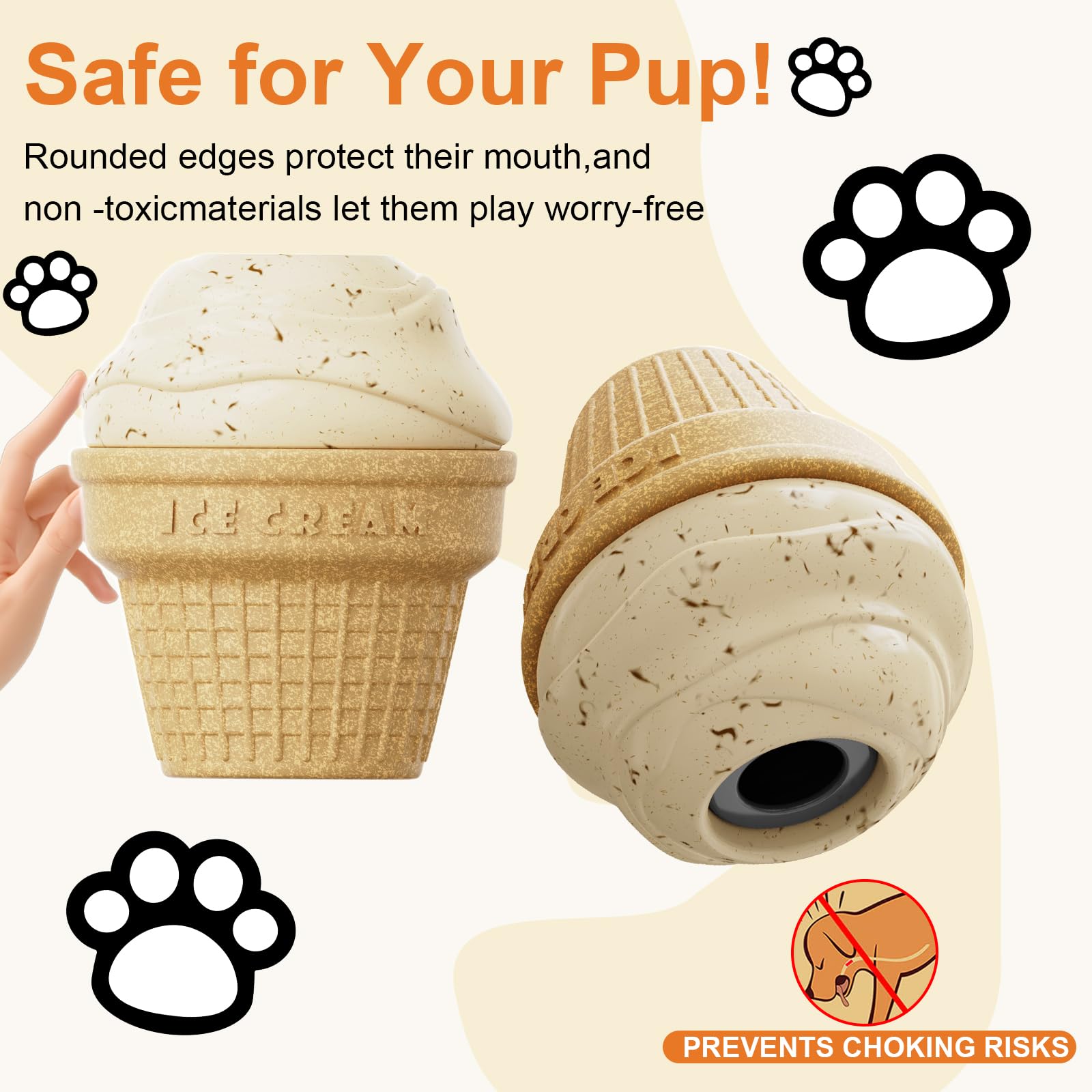 hwnguJ Durable Dog Toy for Aggressive Chewers - Freezable Ice Cream Puzzle Toy - Interactive Treat Dispenser for Anxiety Relief – Long-Lasting Dog Birthday Gift