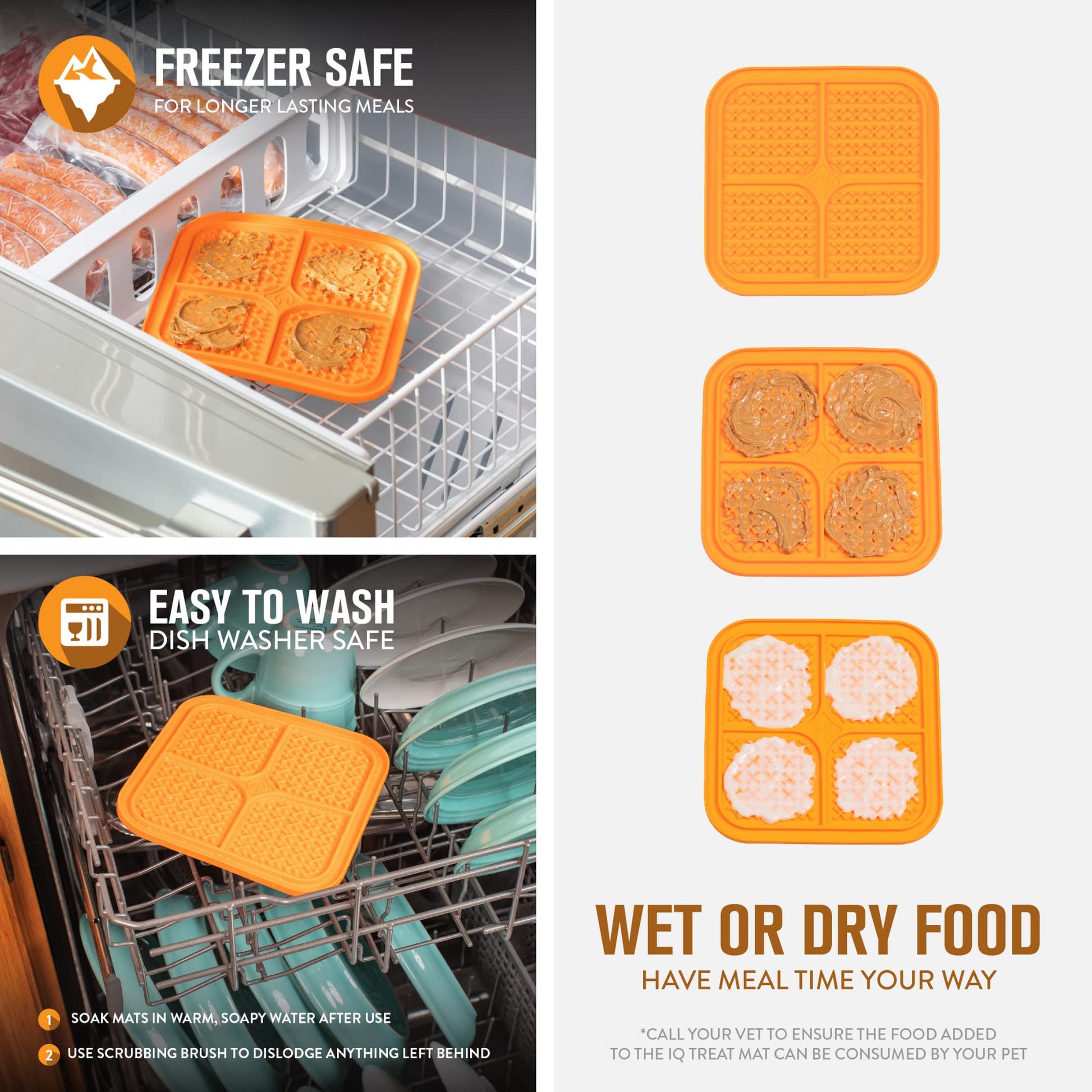 • THOUGHTFUL DESIGN: Our quadrant design helps guide portion control when spreading cat food, dog treats, dog snacks, or wet dog food on our dog lick pad. The raised patterns provide different texture options sure to keep your pet engaged. Not meant for aggressive chewers.