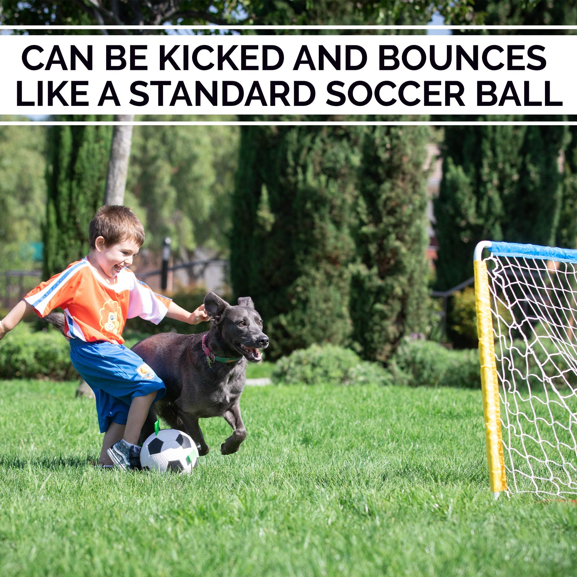 • IDEAL FOR WATER PLAY: This dog soccer ball floats making it perfect for not just the field but also the pool, lake, and beach. Your best friend will want to carry it everywhere quickly becoming one of their favorite interactive dog toys and dog water toys.