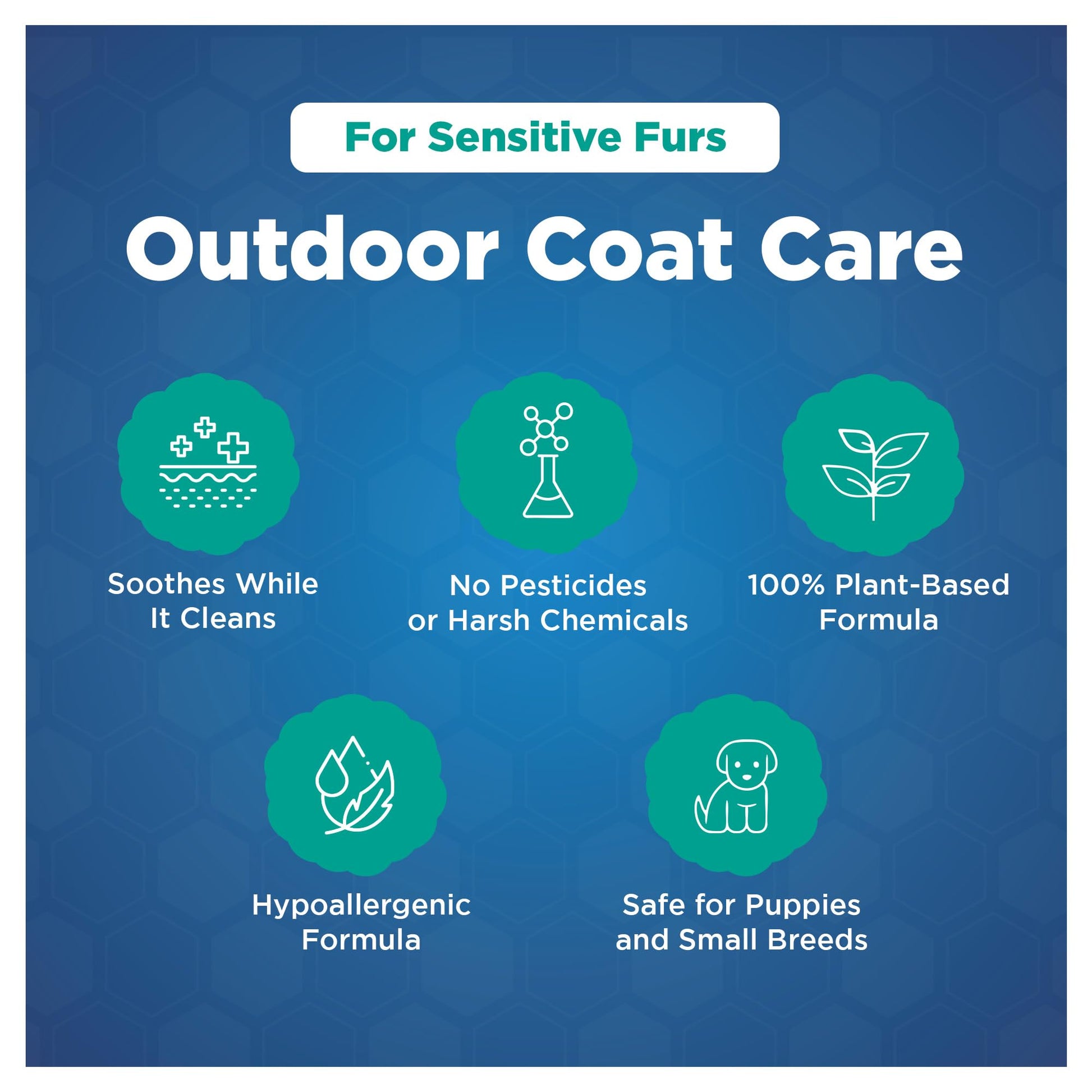 MITE ME NOT FORMULA: Designed to support skin that may be exposed to outdoor elements. This gentle formula helps cleanse the coat thoroughly, leaving it fresh and soft without causing irritation or dryness. A comforting cleanse for pets with active lifestyles.