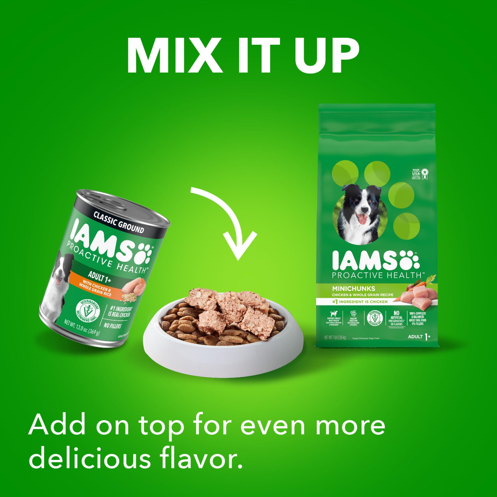 Details: IAMS is committed to helping keep your pets healthy for life. IAMS Proactive Health Chicken Chunks in Gravy Wet Dog Food supports whole body health with essential nutrients and antioxidants. This canned dog food is made with real chicken served in a savory gravy that your dog can’t resist. IAMS Proactive Health Wet Dog food is made with high-quality animal proteins to support strong, healthy muscles and easy digestion. IAMS wet dog food also includes Omega-6 Fatty Acids to support healthy skin and coat. IAMS Proactive Health Lamb Chunks in Gravy contains no artificial flavors or fillers. Support your dog’s whole-body health with IAMS Proactive Health Chicken Chunks in Gravy Wet Dog Food to help your best friend look, feel, and play their best.